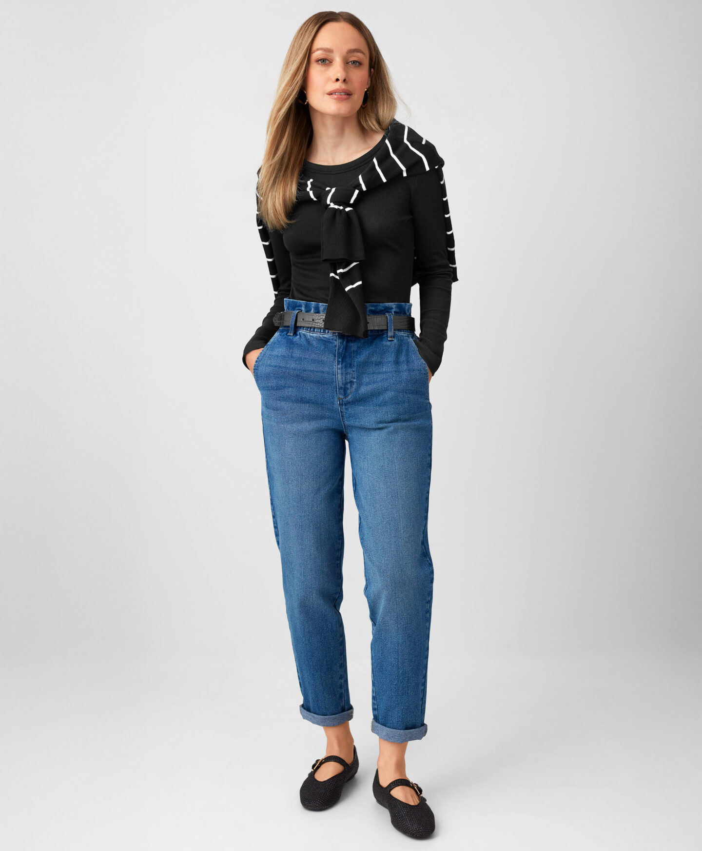 Melns, svītrains krekls nodrošina lielisku piegulumu un augstu valkāšanas komfortu. Tas ir universāls garderobes elements, kas labi noderēs gan ikdienā, gan elegantākos pasākumos.
