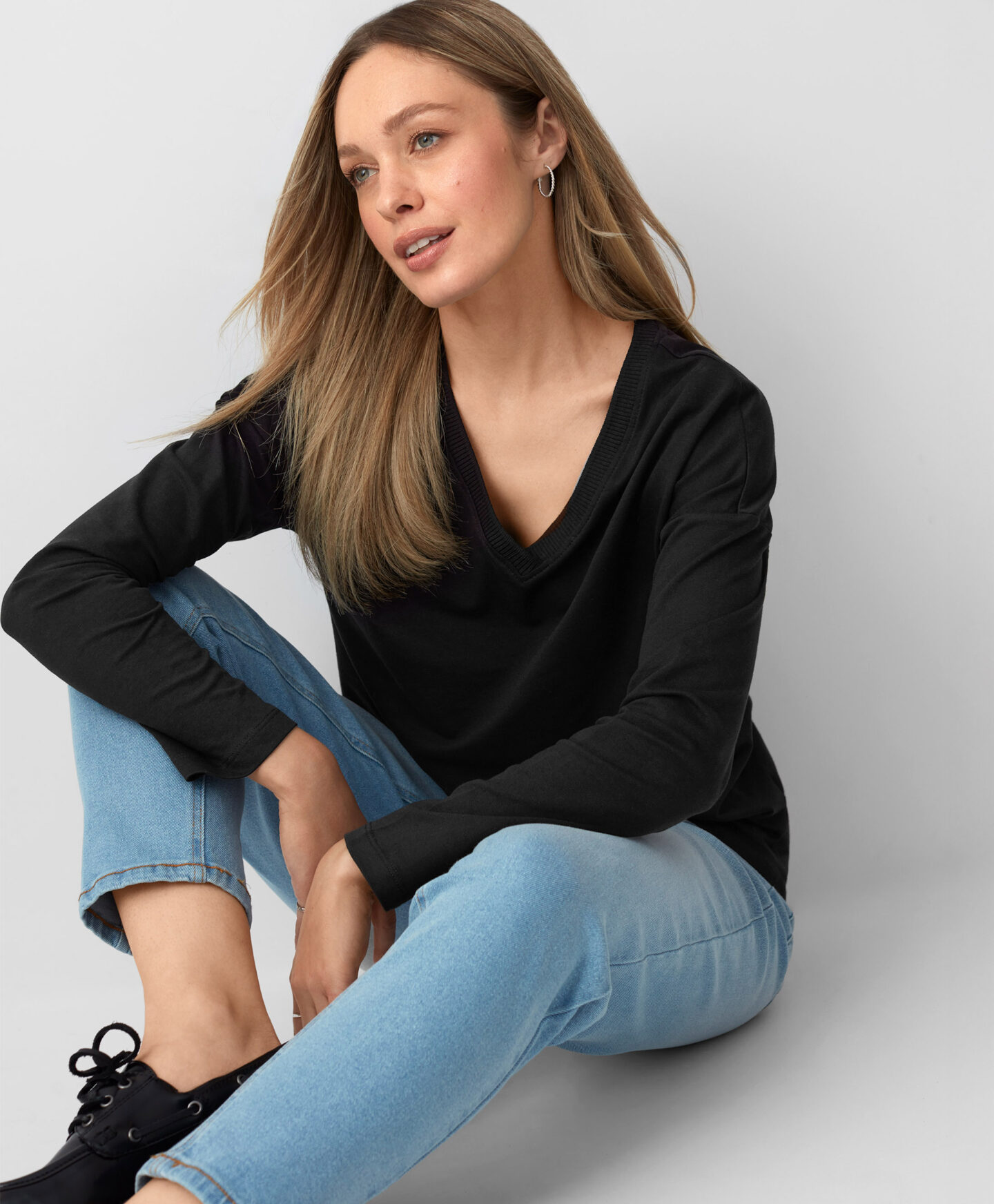 Melns T-krekls ar augstu kokvilnas saturu ir sinonīms kvalitātei un stilam. Universālais piegriezums piestāvēs gan elegantiem, gan ikdienišķiem tērpiem.