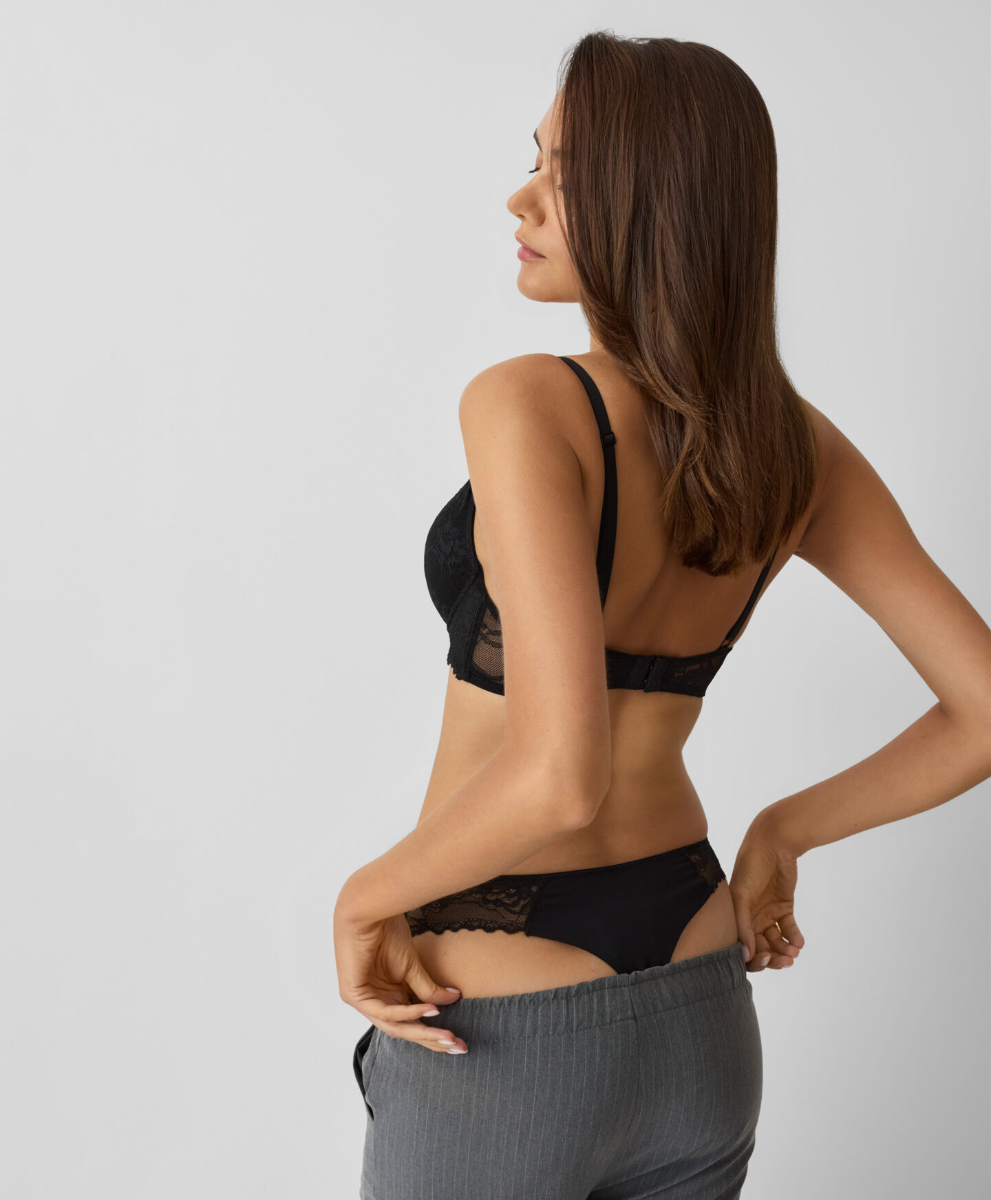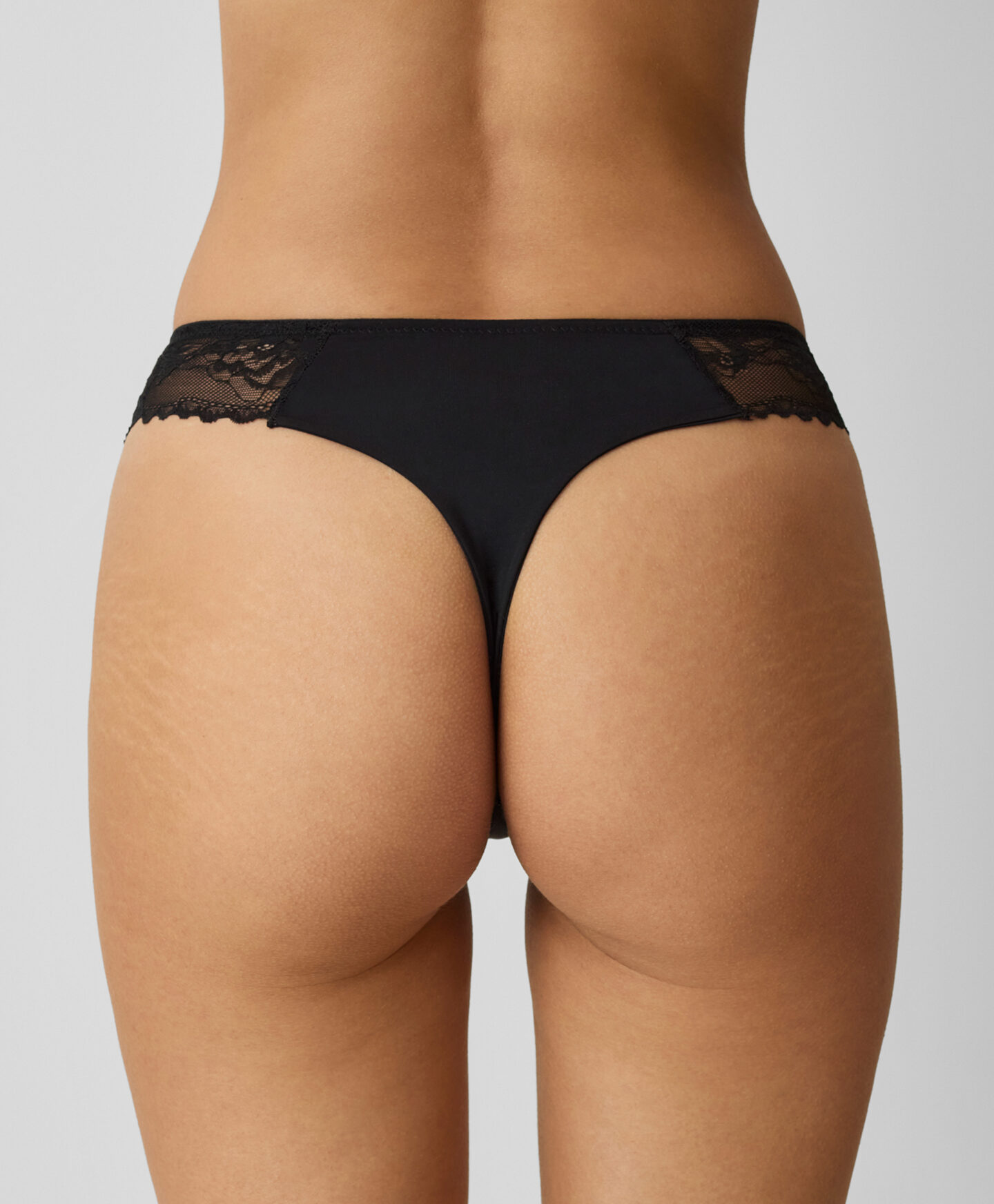 Mežģīņotas stringbiksītes ir ideāli piemērotas, lai tās vilktu zem cieši pieguļošiem apģērbiem, novēršot apakšveļas līniju redzamību. Mežģīņu detaļas piešķir tām romantisku raksturu. Elegantas, smalkas un ļoti pievilcīgas.