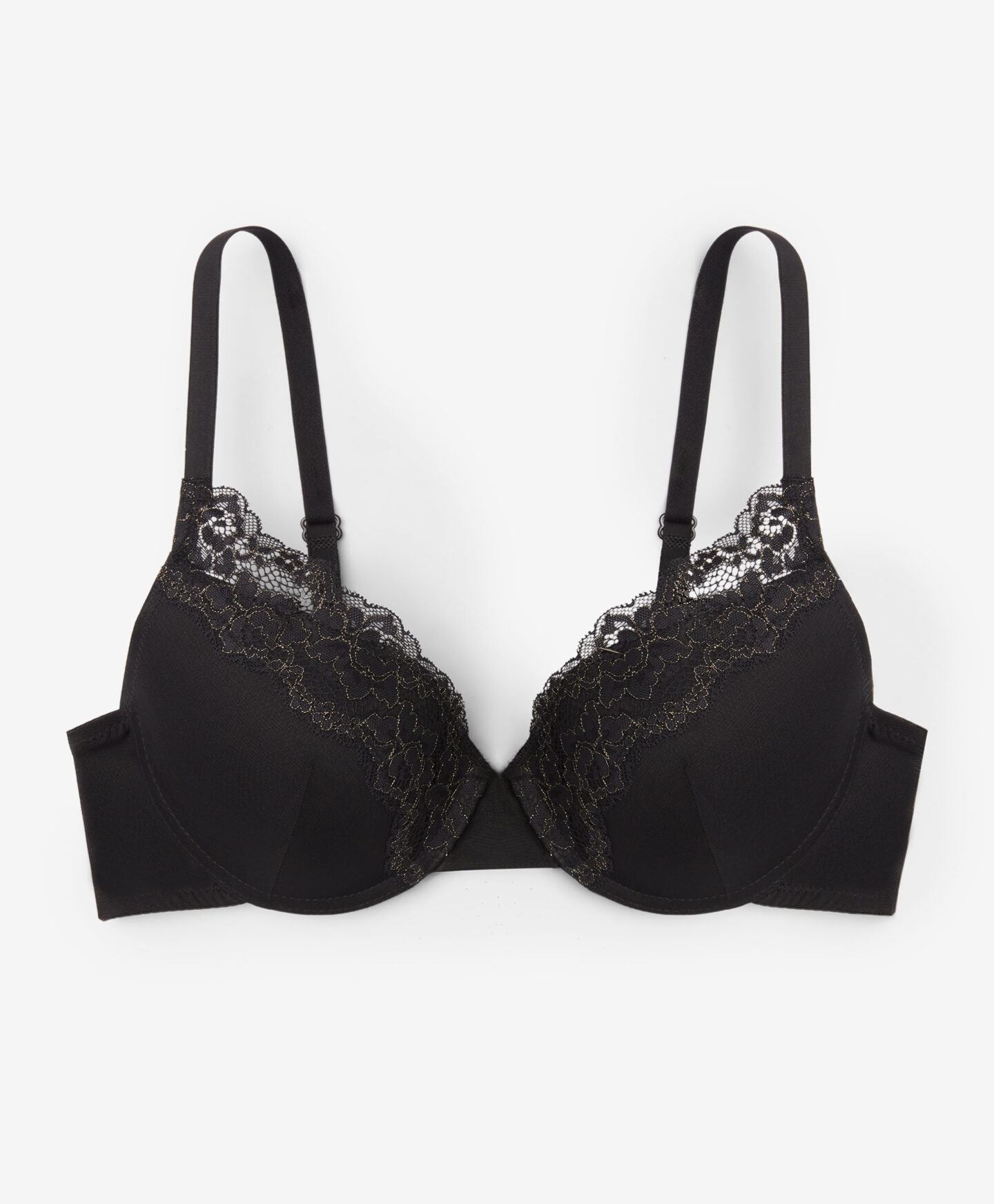 Mežģīņots, paceļošs krūšturis ar lureksu ir ideāla izvēle ikvienam, kas vēlas izcelt savas figūras priekšrocības. Mežģīņu apdare kopā ar mirdzošo lureksu rada ļoti juteklisku efektu. Šis krūšturis ir lieliska izvēle, ko vilkt zem apģērbiem ar dziļāku izgriezumu, tāpat tas paceļ pašapziņu un nodrošina komfortu. Kolekcijā pieejamas arī pieskaņotas apakšbikses.