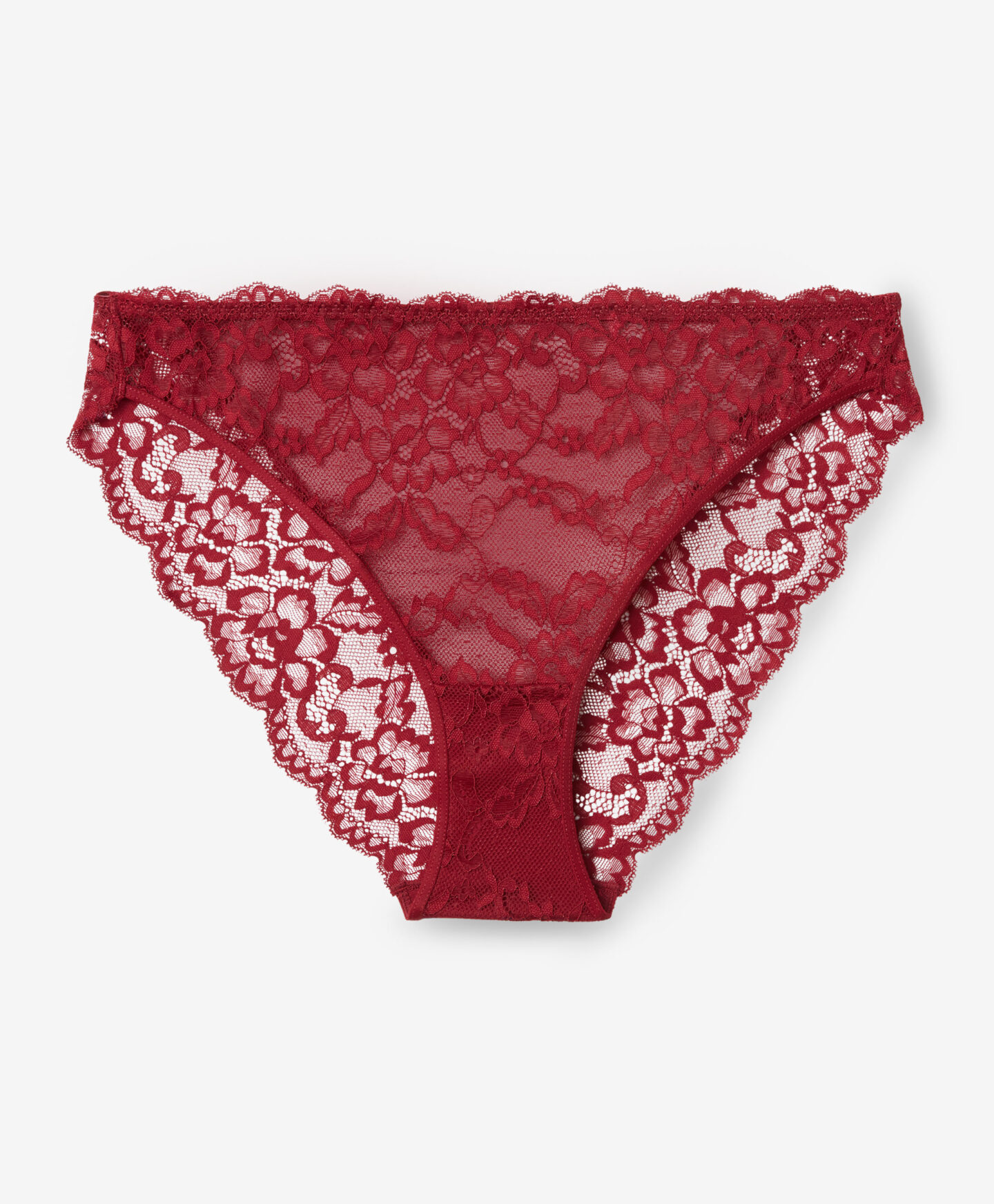 Mežģīņu apakšbikses ar bordo rozēm ir jutekliska izvēle, kas liks justies neticami eleganti. Elastāna piedeva nodrošina, ka apakšbikses perfekti pieguļ, akcentējot figūru. Caurspīdīgas mežģīnes ir lieliska izvēle, ja vēlies pacelt pašapziņu. Kolekcijā ir pieejams arī pieskaņots krūšturis.