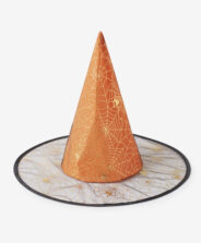 Oranžas raganas cepure ir lielisks papildinājums raganas kostīmam. Zeltainie zirnekļa tīkli, kas apvij cepuri, skaisti mirdzēs gaismā, piesaistot skatienus. Konuss nodrošina cepures stabilu piegulšanu uz galvas. Pieejama arī melna cepure.