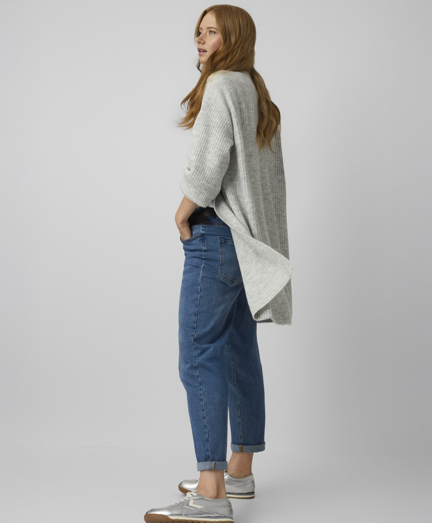 Pelēkā, pagarināta piegriezuma jaka ir ideāli piemērota jebkurai situācijai. Tā nodrošina siltumu un elegantu izskatu vēsākās dienās, turklāt ir lieliski kombinējama ar dažādiem garderobes elementiem, sākot no kleitām līdz pat biksēm. Jakas brīvais piegriezums ir piemērots jebkurai figūrai, nodrošinot komfortu un kustību brīvību.