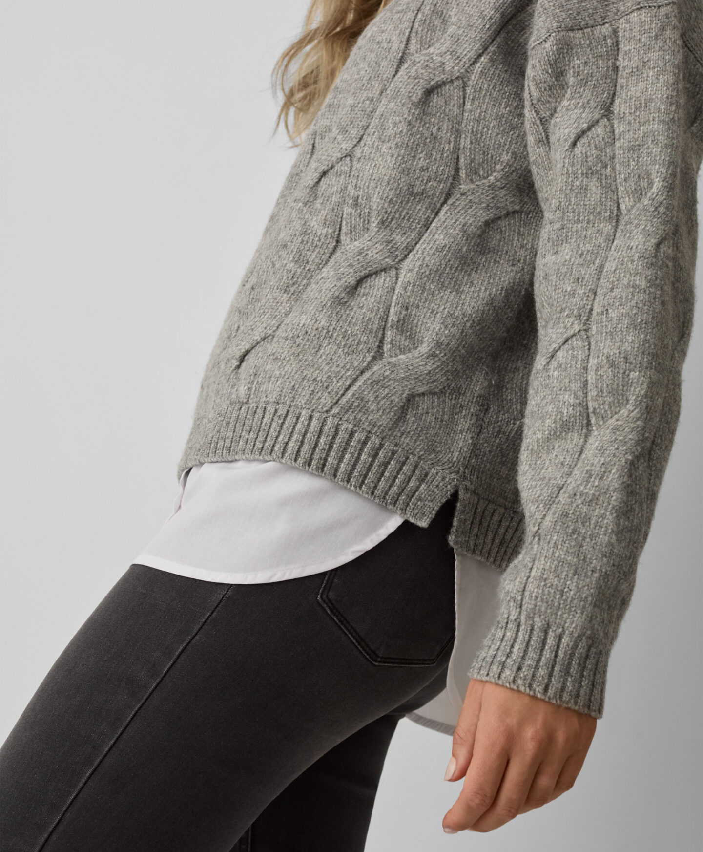 Pelēks džemperis ar kreklu ir domāts ikvienam, kas seko modes tendencēm. Šāds adījums ir rudens noskaņas pamatā, turklāt kombinācijā ar balto kreklu, tas kļūst par lielisku izvēli dažādiem gadījumiem. To var vilkt uz biroju, tikšanās reizēs ar draugiem vai uz rudenīgu randiņu. Pieejams divās krāsās, no kā izvēlēties.