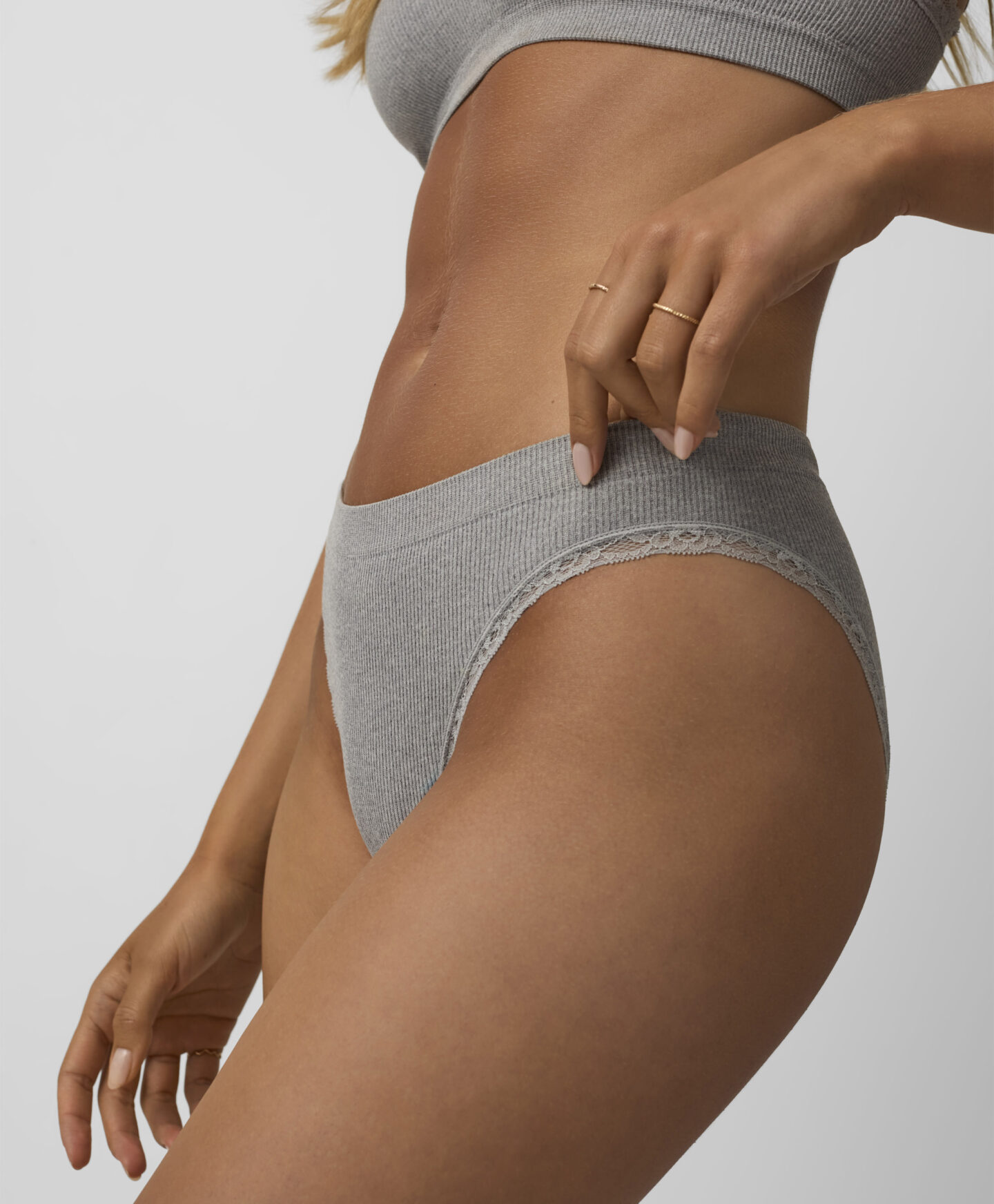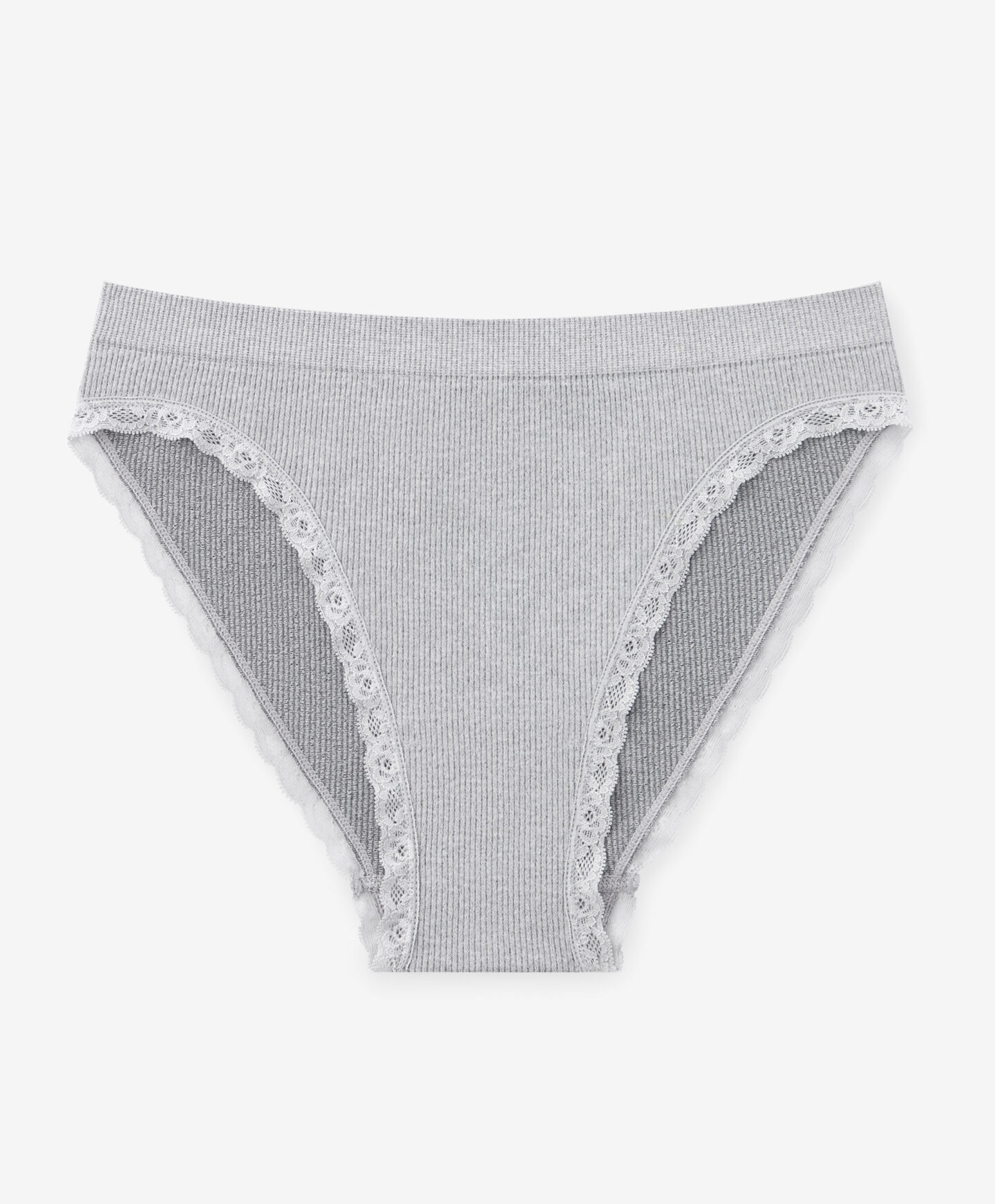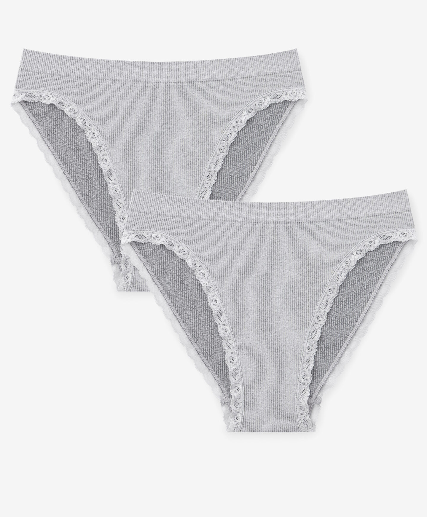 2 pelēku apakšbikšu komplekts ar mežģīnēm ir ideāli piemērots romantiskas apakšveļas cienītājiem. Izsmalcinātās mežģīnes rosina iztēli, bet ir arī ideāli piemērotas ikdienai. Bikini piegriezums nodrošina pilnvērtīgu komfortu, vienlaikus izceļot auguma priekšrocības.