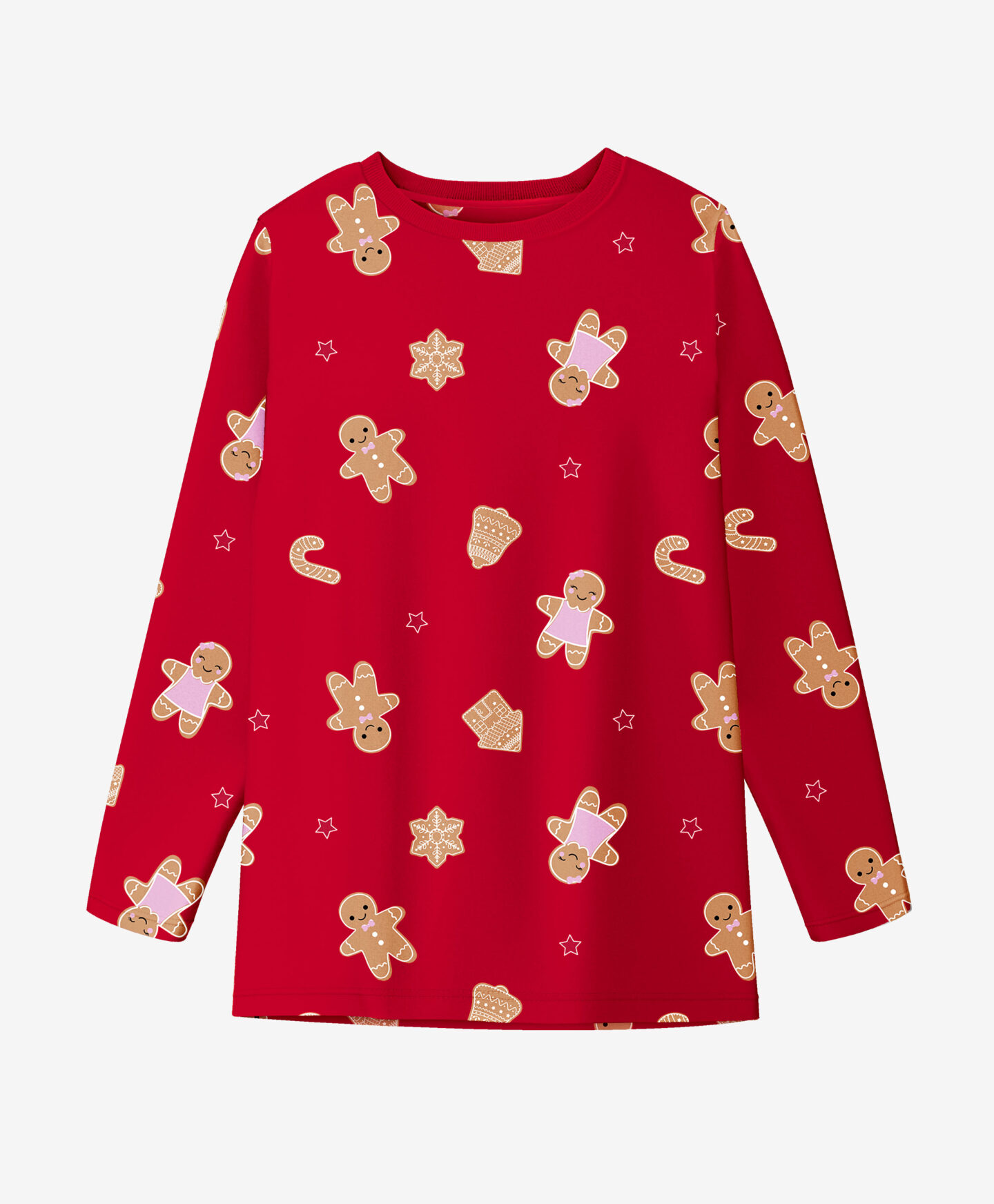 Pidžama ar piparkūku rakstu, izgatavota no 100% kokvilnas, ir mīksta. Komplektā ietilpst krekls ar garām piedurknēm un bikses, kas padara to ideālu vēsākām naktīm. Mīkstais, elpojošais audums nodrošinās komfortu katru nakti. Šāda pidžama ir lieliska dāvana svētku gaisotnes mīļotājiem.