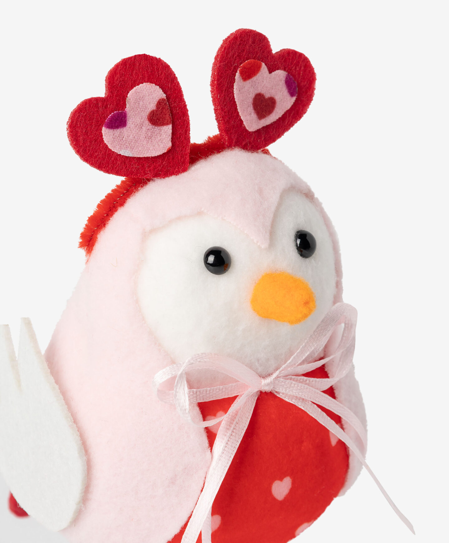 Plīša putns ar stīpiņu būs romantisks akcents jebkurā interjerā. To var novietot uz viesistabas galda, guļamistabas kumodes vai biroja galda. Tas ir mīksts, piemīlīgs un piešķir telpai mājīgumu. Piedāvājumā ir pieejami divi dizaini.