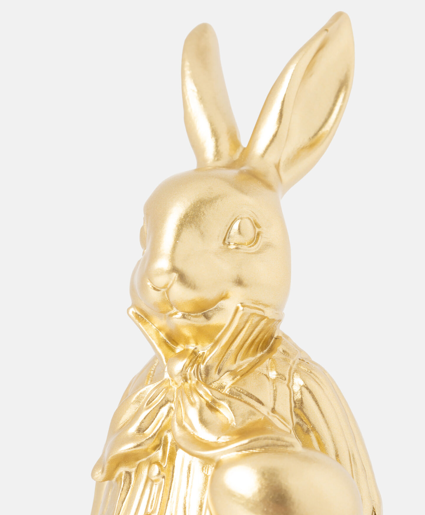 Liela izmēra polirezīna zaķis ar burkānu piesaista uzmanību ar tā eleganto izskatu. Polirezīns ir viegls un izturīgs materiāls, ko īpaši neietekmē laiks un laikapstākļi, kas nodrošina figūriņas ilgstošu kvalitāti. Zaķis ir ideāls tiem, kas meklē smalkus, gaumīgus akcentus. Pieejami dažādi dizaini.