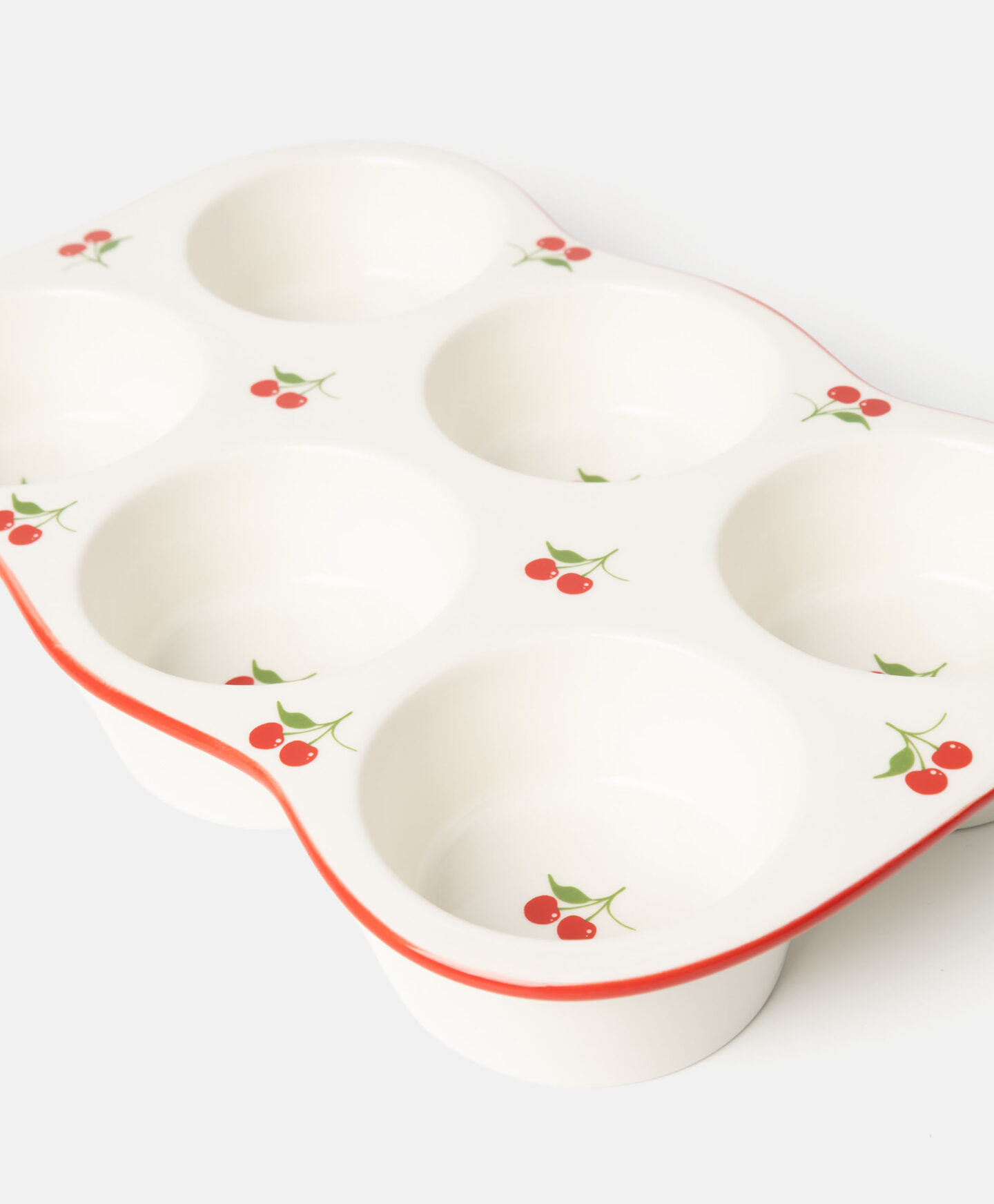 Šī porcelāna mafinu veidne ar ķiršu motīvu ļauj vienlaikus izcept sešus mafinus. Tā ir izturīga, karstumizturīga un viegli tīrāma. Augļu motīvs piešķirs krāsu ikdienas darbiem virtuvē. Šī veidne ir arī lieliska dāvana ēdienu gatavošanas entuziastiem.