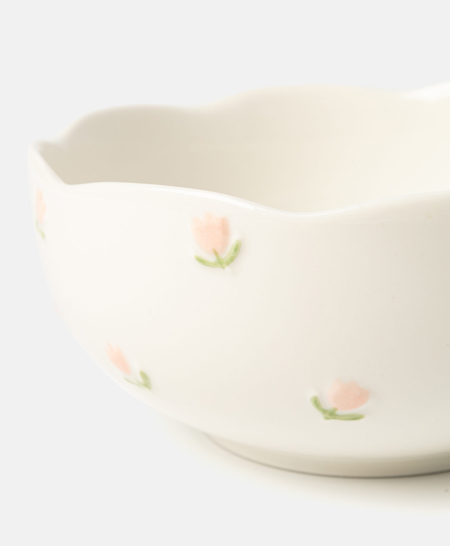 Porcelāna salātu bļoda ar smalku tulpju rakstu izcelsies virtuvē. Tās dekoratīvās, neregulārās maliņas padara to patiesi unikālu. Pieejami arī pieskaņoti šķīvji un krūzes.