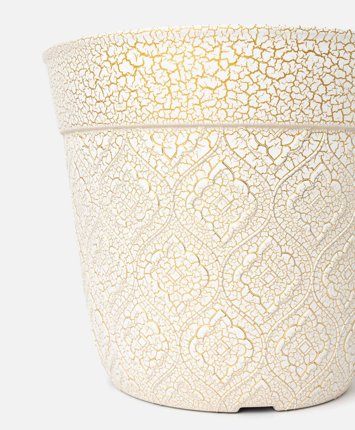 Rakstainais puķu pods izmērā 28 cm piesaista uzmanību ar neregulāro struktūru. Neitrālais tonis lieliski iederēsies viesistabas, guļamistabas vai bērnistabas interjerā, izceļot ziedu skaistumu. Vidējais izmērs ir ideāli piemērots populārāko telpaugu, piemēram, fikusu, monsteru vai dracenu, audzēšanai. Puķu pods ir izgatavots no izturīga materiāla, ir viegls un vienkārši kopjams.