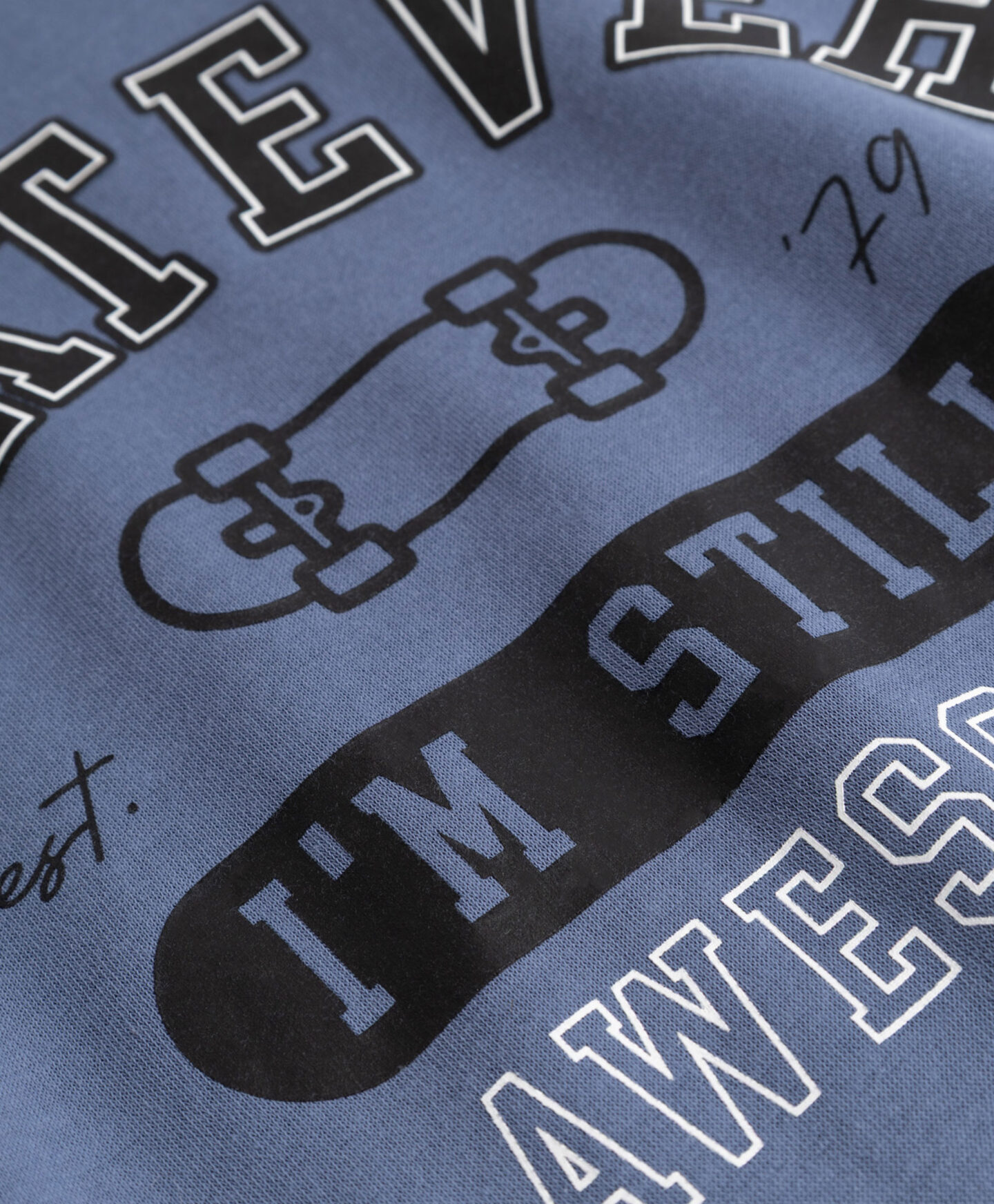 Pusaudžu džemperis ar skeitborda apdruku priekšpusē ir ideāls ikdienas apģērbs. Tas ir izgatavots no mīksta materiāla ar kokvilnas piejaukumu, kas maigi piekļaujas ādai, nodrošinot komfortu. Klasiskais piegriezums nodrošina kustību brīvību. Pieejamas arī pieskaņotas treniņbikses.