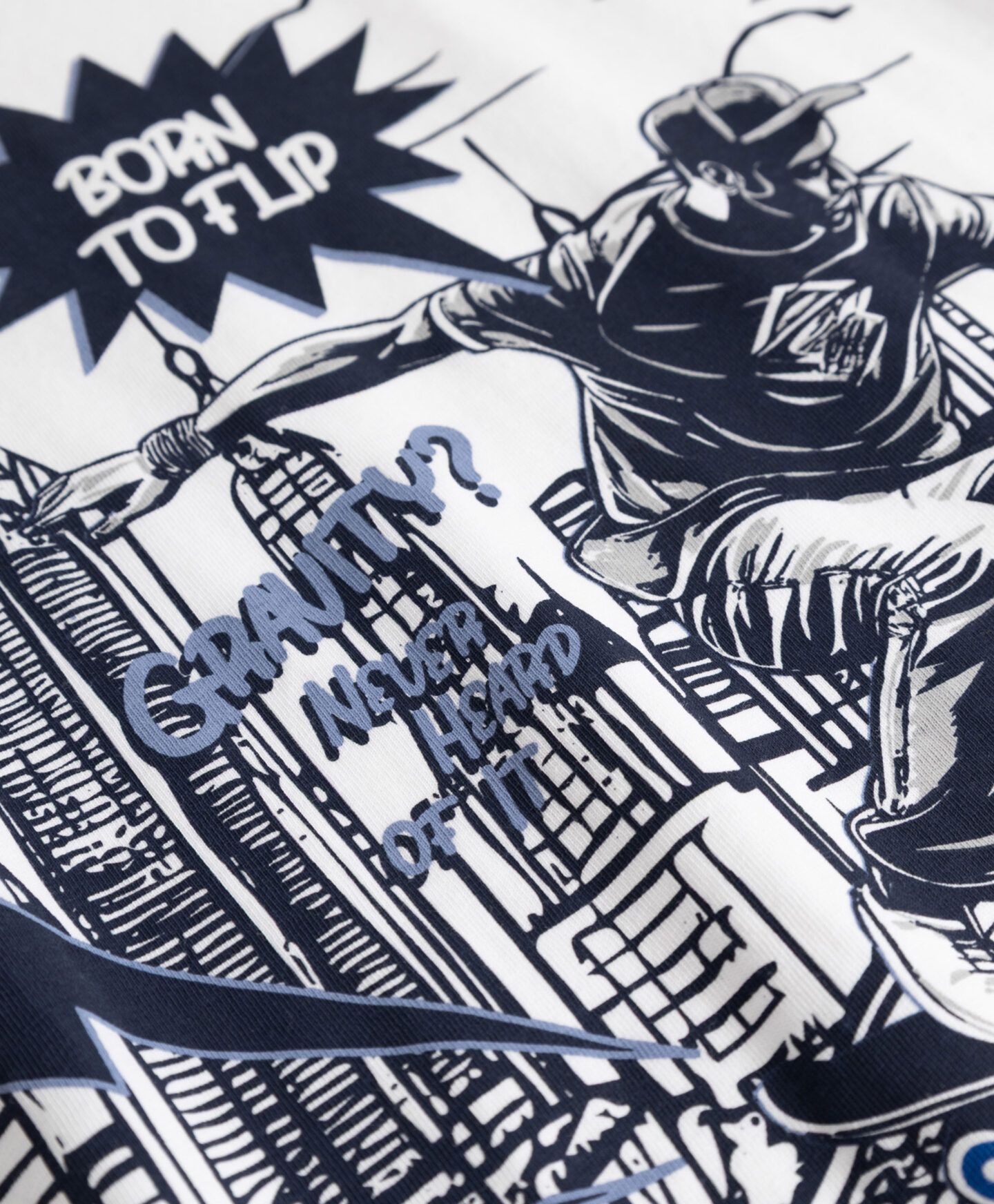 Pusaudžu 100% kokvilnas T-krekls ar īsām piedurknēm un dinamisku apdruku priekšpusē. Ideāli piemērots skolai vai atpūtai pēc tās. Mīkstais materiāls maigi ieskauj bērna ādu un nodrošina komfortu katrā kustībā.