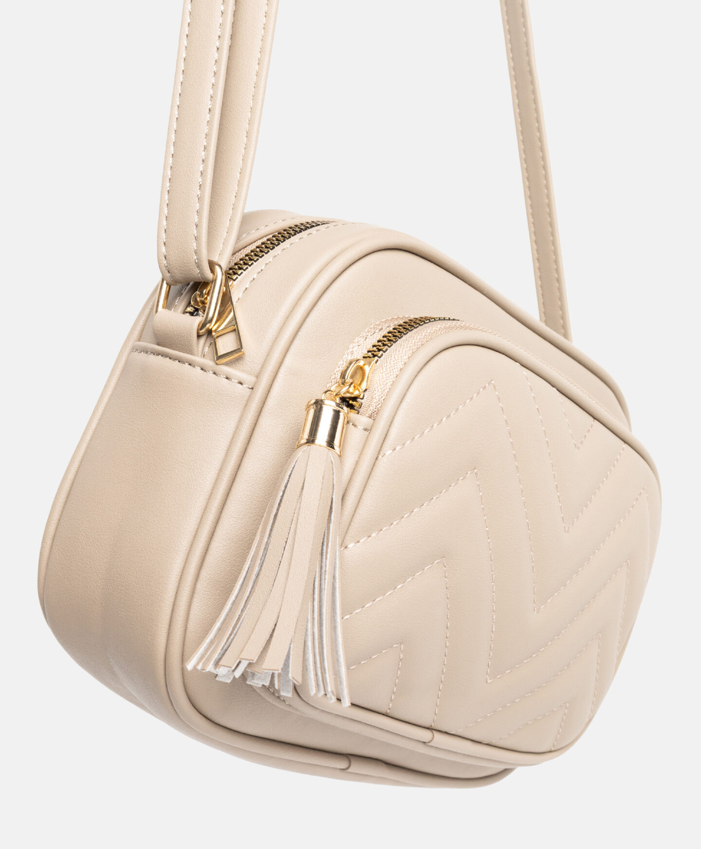 Bēša rokassoma ar pušķīti lieliski papildinās jebkuru tērpu. Regulējama siksna ļauj pielāgot garumu jūsu vajadzībām.