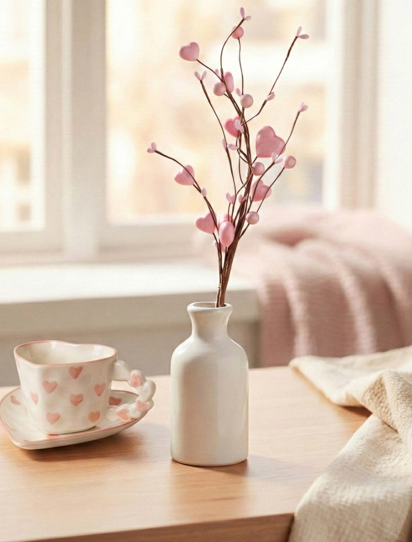Dekoratīvais rozā kociņš ļauj izveidot īpašu Valentīndienas dekorāciju. Tas lieliski der kā rotājums pušķos, podos vai uz galda. Elastīgie zari ar sirdīm un pērlēm piešķirs eleganci un romantiku jebkuram interjeram. Piedāvājumā ir pieejami divi krāsu varianti.