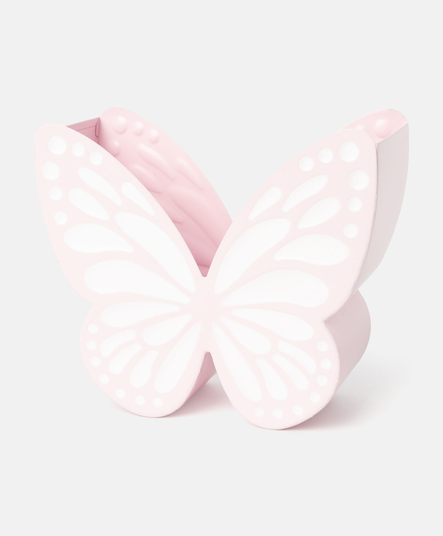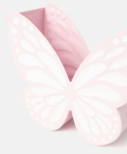 Rozā metāla puķu pods tauriņa formā