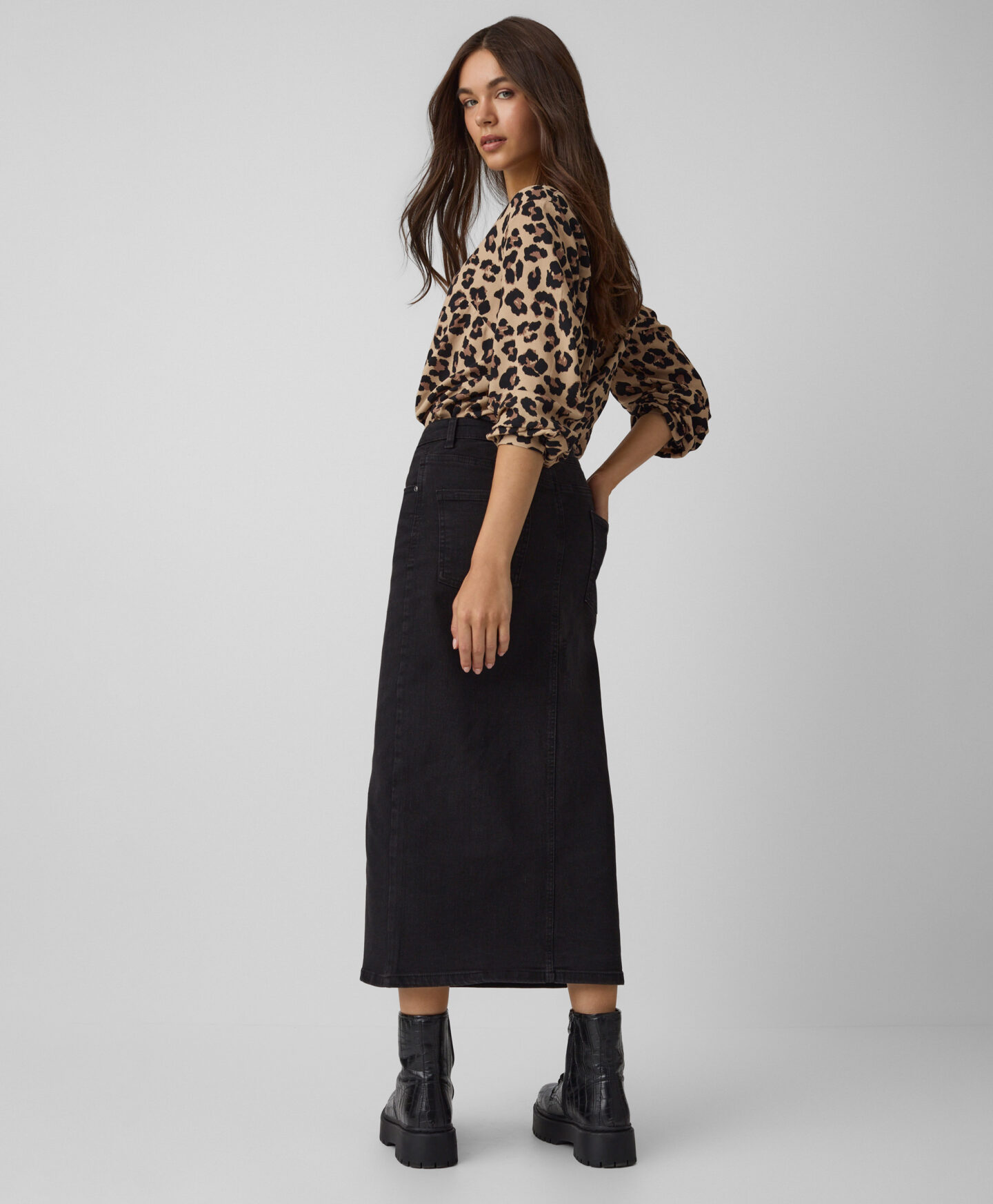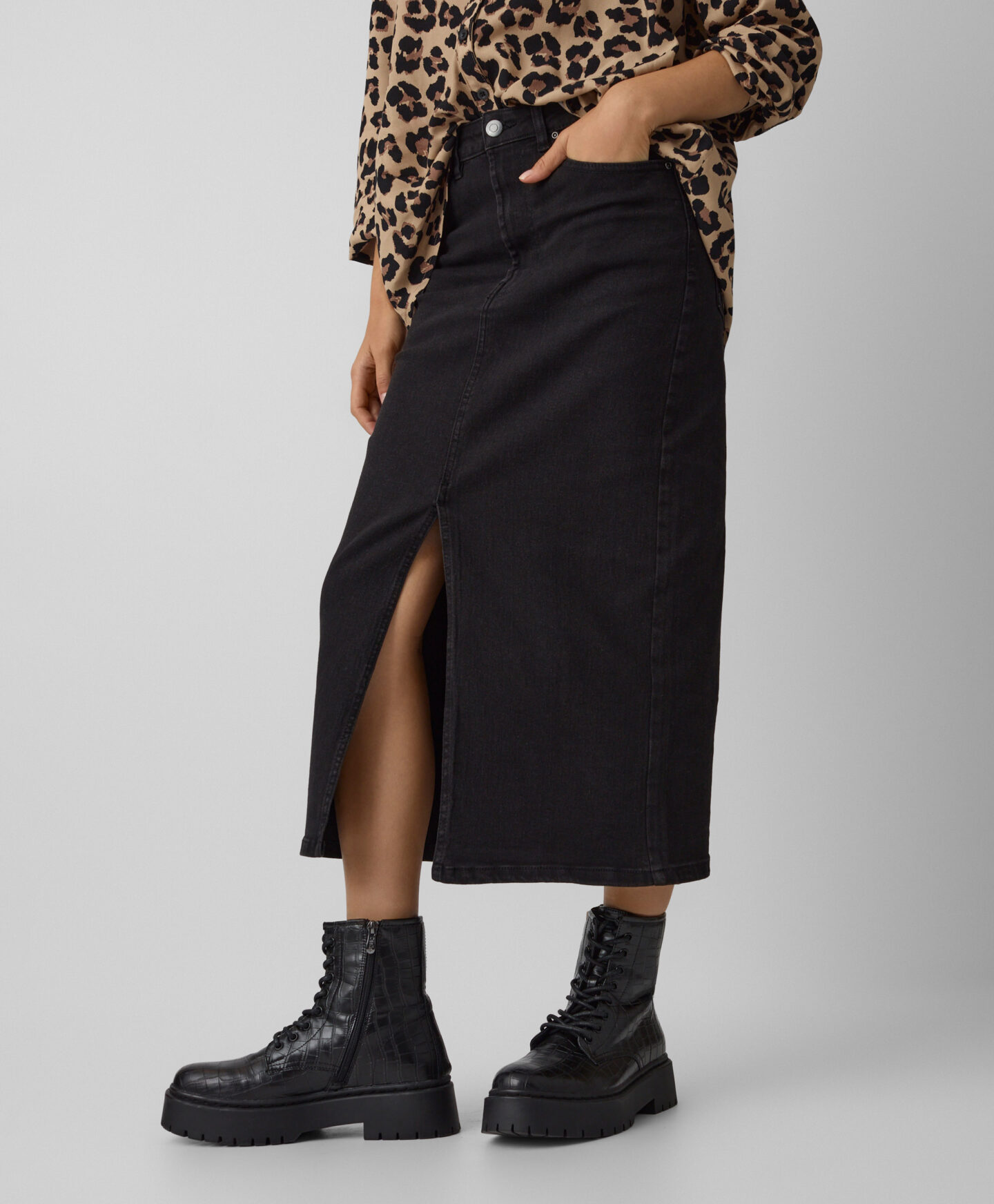 Spódnica damska jeansowa z bawełną świetnie komponuje się zarówno z obuwiem sportowym, jak i kozakami czy botkami. Długość midi jest bardzo uniwersalna i pozwoli Ci stworzyć wiele udanych stylizacji doskonałych do biura, na uczelnię czy jesienny spacer na świeżym powietrzu.