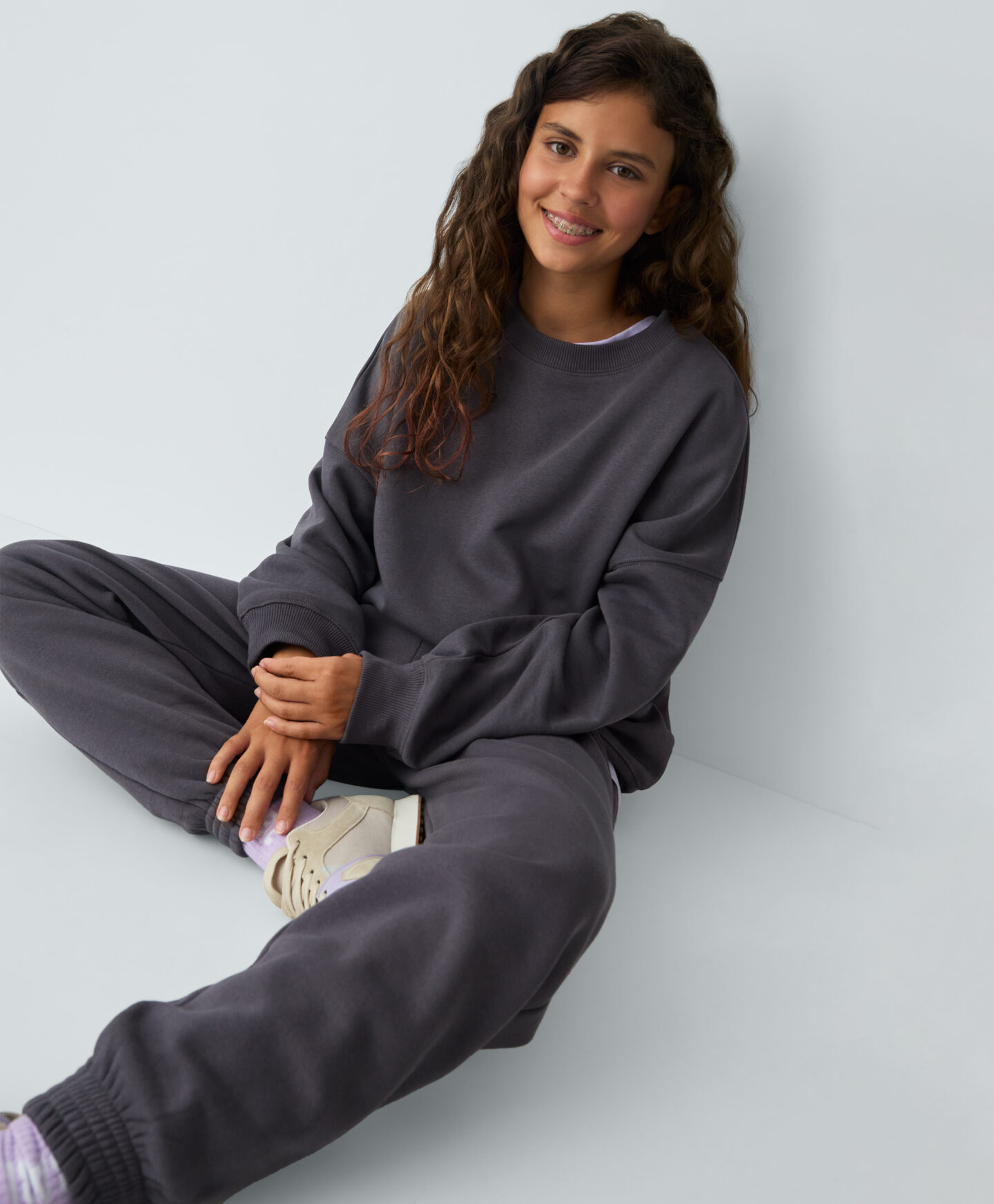 Šajā sezonā obligāti jāiegādājas no kokvilnas izgatavotās sporta bikses ar modernu, liela izmēra piegriezumu. Tās ir mīkstas, ērtas un piedāvā pilnīgu kustību brīvību. Ideāli piemērotas skolai, sporta aktivitātēm vai aktivitātēm brīvā dabā nedēļas nogalē. Pieejams arī pieskaņots sporta krekls tādā pašā krāsā.