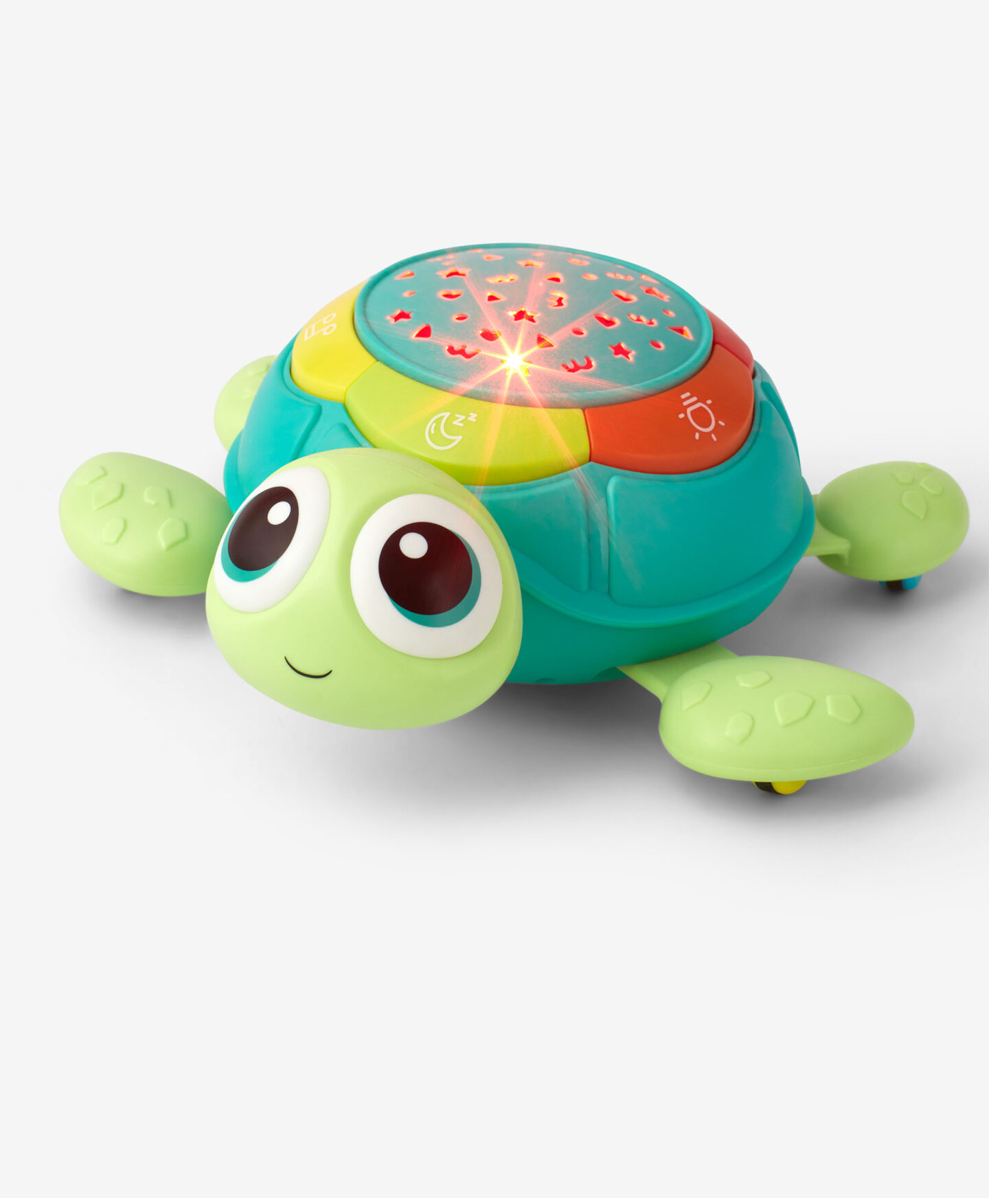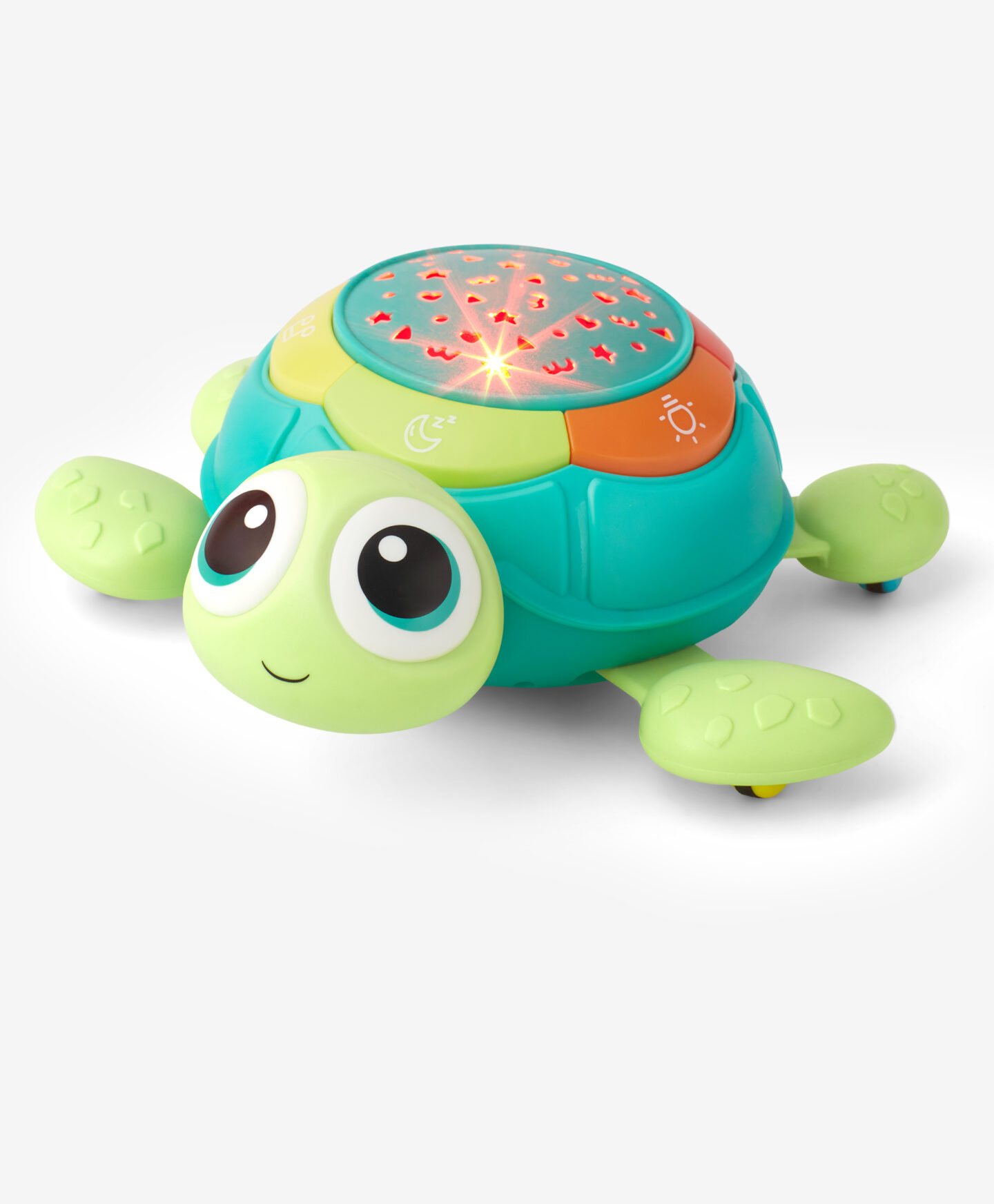 Staigājošais bruņurupuča projektors apvieno kustīgas rotaļlietas funkciju ar gaismas efektiem. Spēlējoties bruņurupucis virzās uz priekšu, projicējot gaismas rakstus, kas piesaista bērna uzmanību. Rotaļlieta stimulē redzi un veicina fizisko aktivitāti. Baterijas ir iekļautas komplektā.