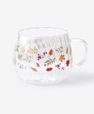 Stikla krūze ar rudens motīviem ir klasisks risinājums, kas apvieno vienkāršību ar eleganci. Rudens tēja ar augļiem tajā izskatīsies un garšos vēl labāk. Universālais dizains padara to piemērotu gan ikdienas lietošanai, gan īpašiem gadījumiem.