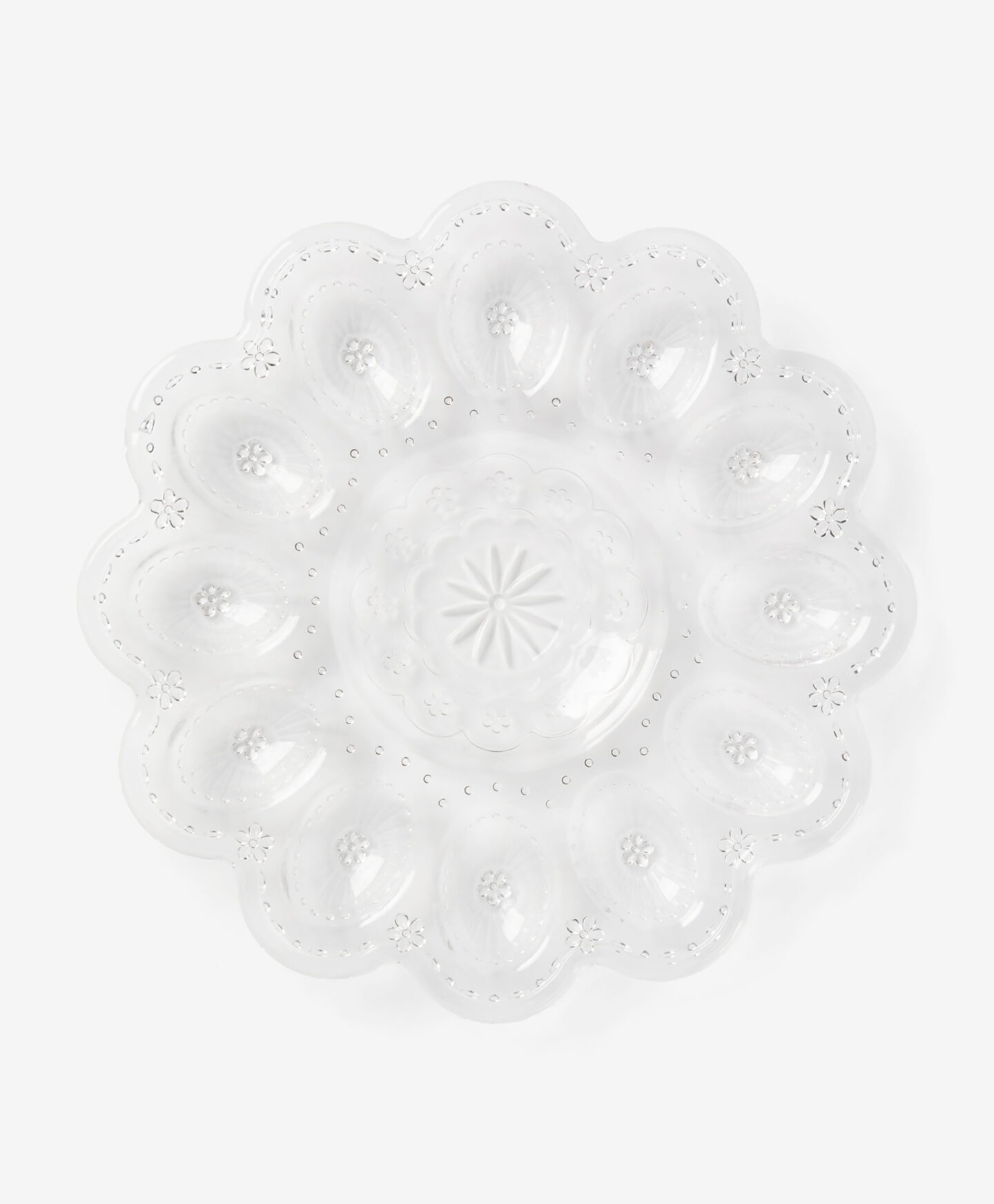 Stikla trauks olām ir ideāli piemērots svētku brokastīm. Tas ir elegants veids, kā pasniegt pildītas, cieti vai mīksti vārītas olas. Tāpat trauks arī lieliski der kā galda dekorācija vai paplāte, uz kuras salikt pašu krāsotās olas.