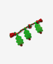 Suņa rotaļlieta vilkšanai ar Ziemassvētku eglēm ļauj četrkājainajam draugam izlādēt enerģiju un ir lieliski piemērota vilkšanai. Tai ir pīta virve ar mīkstiem elementiem, kas veidoti kā eglītes un mudina satvert un košļāt. Šī rotaļlieta apvieno izturību ar vieglumu.