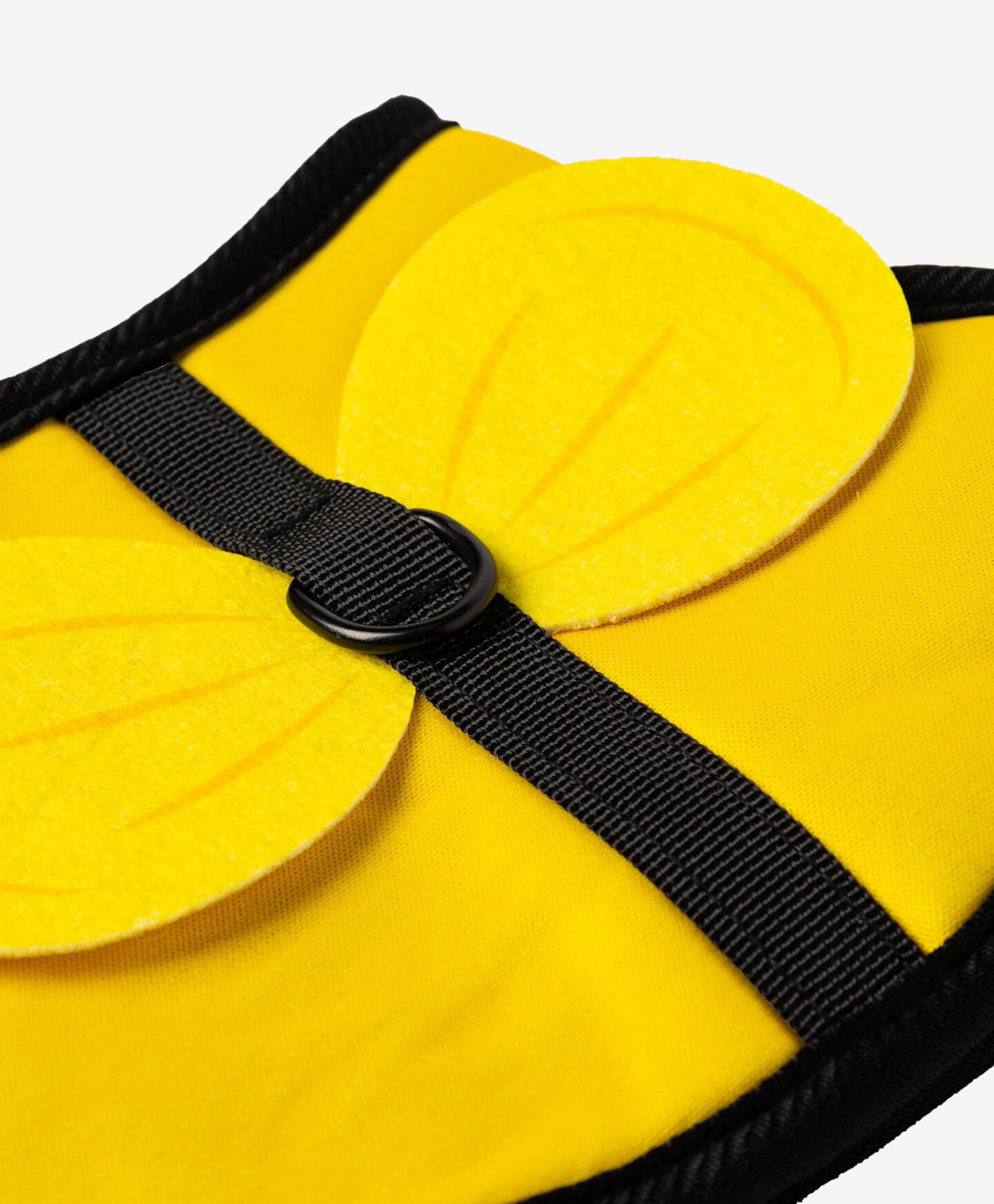 Suņa siksna ar spārniem apvieno funkcionalitāti ar piemīlīgu dizainu, kas piesaistīs ikviena dzīvnieku mīļotāja uzmanību. Bites spārni un izteiksmīgais svītriņu raksts piešķir siksnai rotaļīgu raksturu un padara to par unikālu aksesuāru, kas izcels mājdzīvnieku pastaigās. Izgatavota no mīksta, izturīga materiāla, siksna nodrošina maksimālu komfortu un drošību sunim, kamēr nododaties kopīgām aktivitātēm. Regulējamā aizdare ļauj to pielāgot dažādu šķirņu un izmēru suņiem.