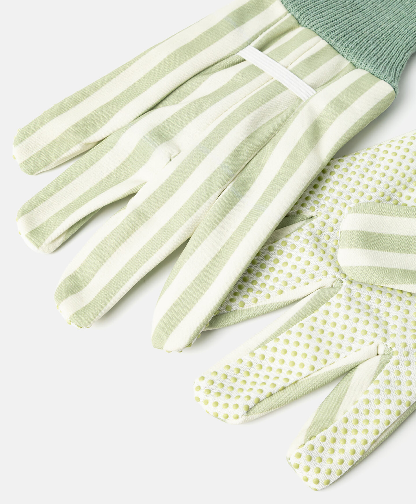 Svītraini dārza cimdi ir neaizstājams aksesuārs, kas nepieciešams ikvienam, kas strādā dārzā, vienlaikus rūpējoties par maigo roku ādu. Cimdi nodrošina lielisku piegulumu, komfortu un kustību brīvību darba laikā. Izgatavoti no izturīgiem materiāliem, tie pasargā no ērkšķiem un netīrumiem, bet teksturētā virsma nodrošina stingru saķeri ar dārza darbarīkiem. Cimdi ir viegli kopjami. Piedāvājumā pieejami dažādi modeļi.