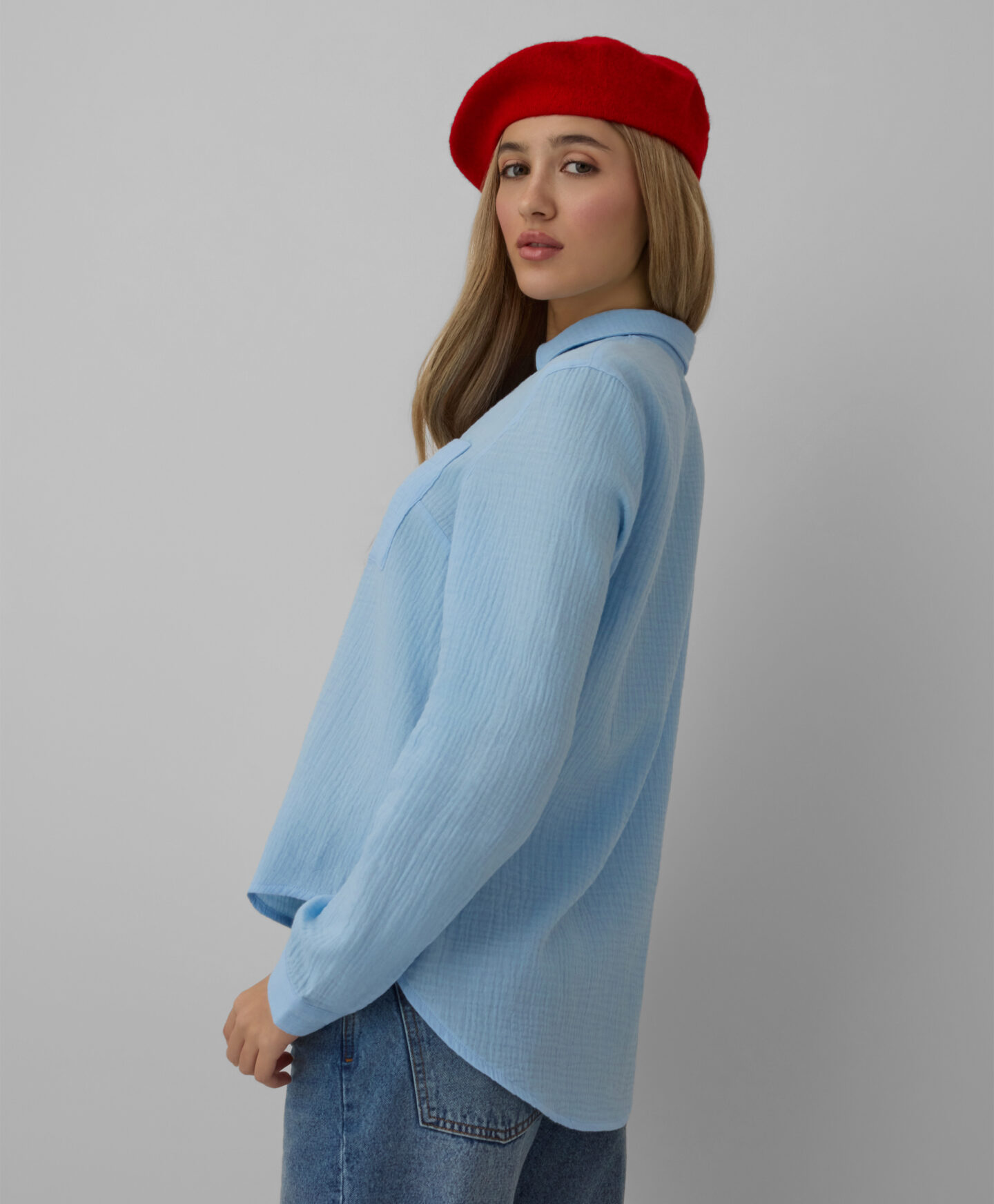 100% kokvilnas muslīna krekls ir ideāla izvēle ikvienam, kas novērtē dabiskus materiālus. Vieglais un elpojošais muslīns nodrošina valkāšanas komfortu. Tas ir ideāli piemērots gan ikdienas apģērbam ar džinsiem, gan elegantiem tērpiem.
