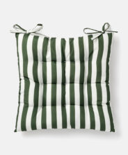 Ūdensizturīgs krēsla spilvens ar svītrām nodrošina komfortu, atrodoties ārā. Tas ir izgatavots no mīksta, patīkama materiāla, kas jebkuru krēslu pārvērš par ērtu sēdvietu. Klasiskais svītriņu raksts piešķir balkona iekārtojumam mūsdienīgu noskaņu. Ūdensizturīgais pārklājums pasargā spilvenu no lietus, rasas un netīrumiem, kā arī atvieglo tā tīrīšanu. Spilvenam ir aukliņas, pateicoties tām, spilvenu var piestiprināt pie krēsla. Piedāvājumā pieejami spilveni divos dažādos rakstos.