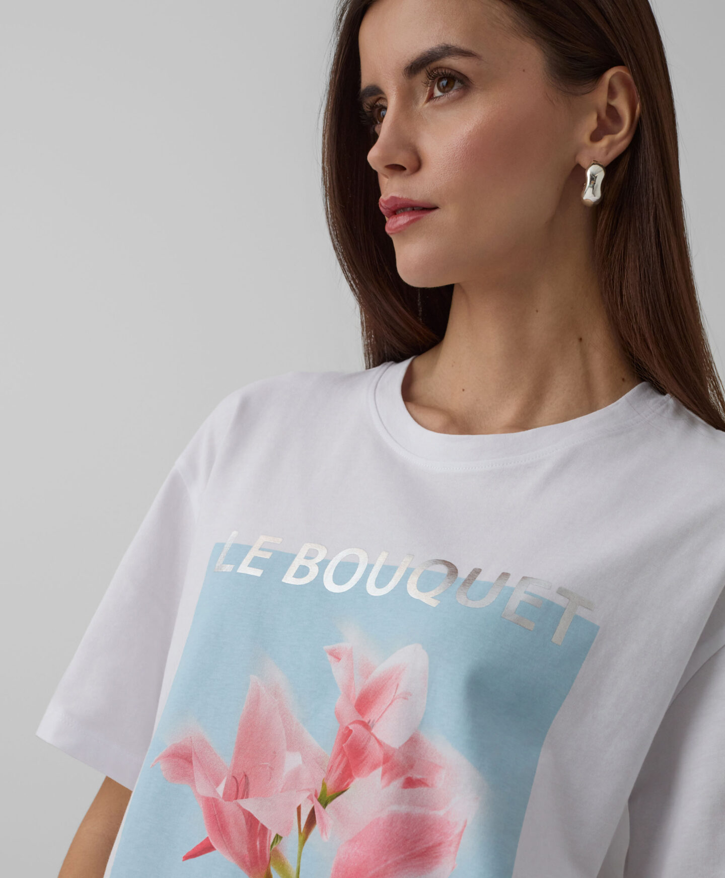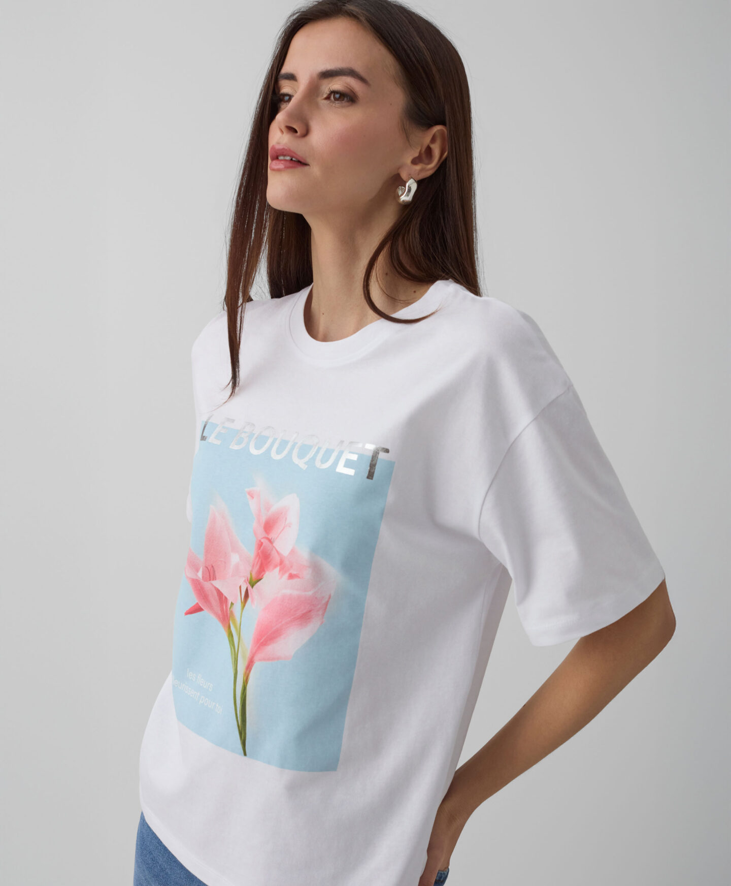 100% kokvilnas T-krekls ar ziedu grafiku ieviesīs skapī svaigumu! Tas ir mīksts, patīkams un ļauj ādai elpot. Apdruka priekšpusē piesaista uzmanību un padara šo T-kreklu atšķirīgu no citiem. Kombinējot ar klasiskiem džinsiem, tas veido universālu tērpu, kas ir ideāli piemērots tikšanās reizēm ar draugiem, ikdienas iepirkšanās maratonam vai pastaigām ar suni.