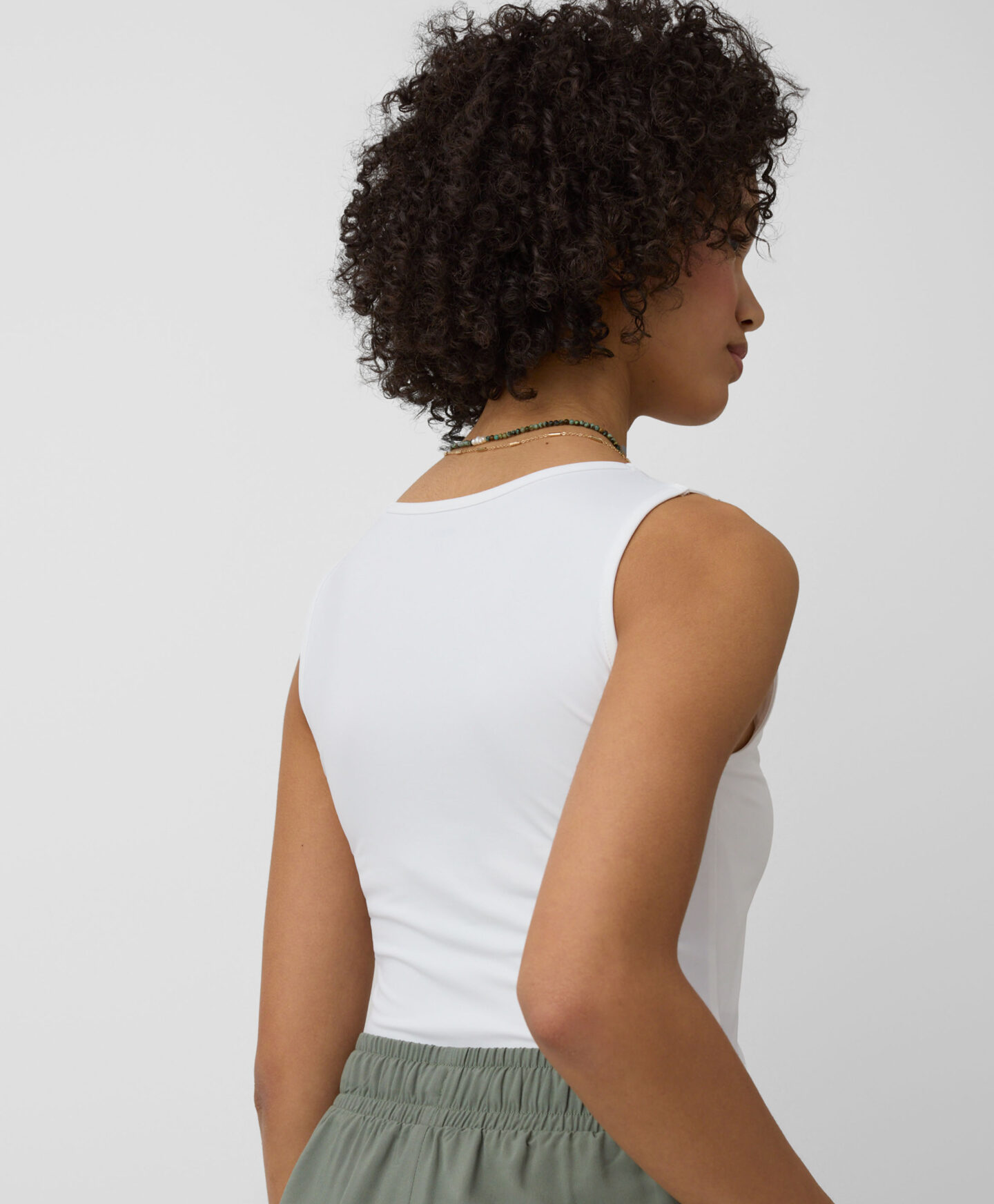 Top damski biały jest niezwykle uniwersalny. Pasuje zarówno do jeansów, chinosów, szortów, jak i spodni sportowych. Założysz go pod żakiet lub bluzę sportową. Gładka faktura i jednolity kolor sprawiają, że ten top stanie się podstawą każdej udanej stylizacji. W ofercie trzy warianty kolorystyczne do wyboru.