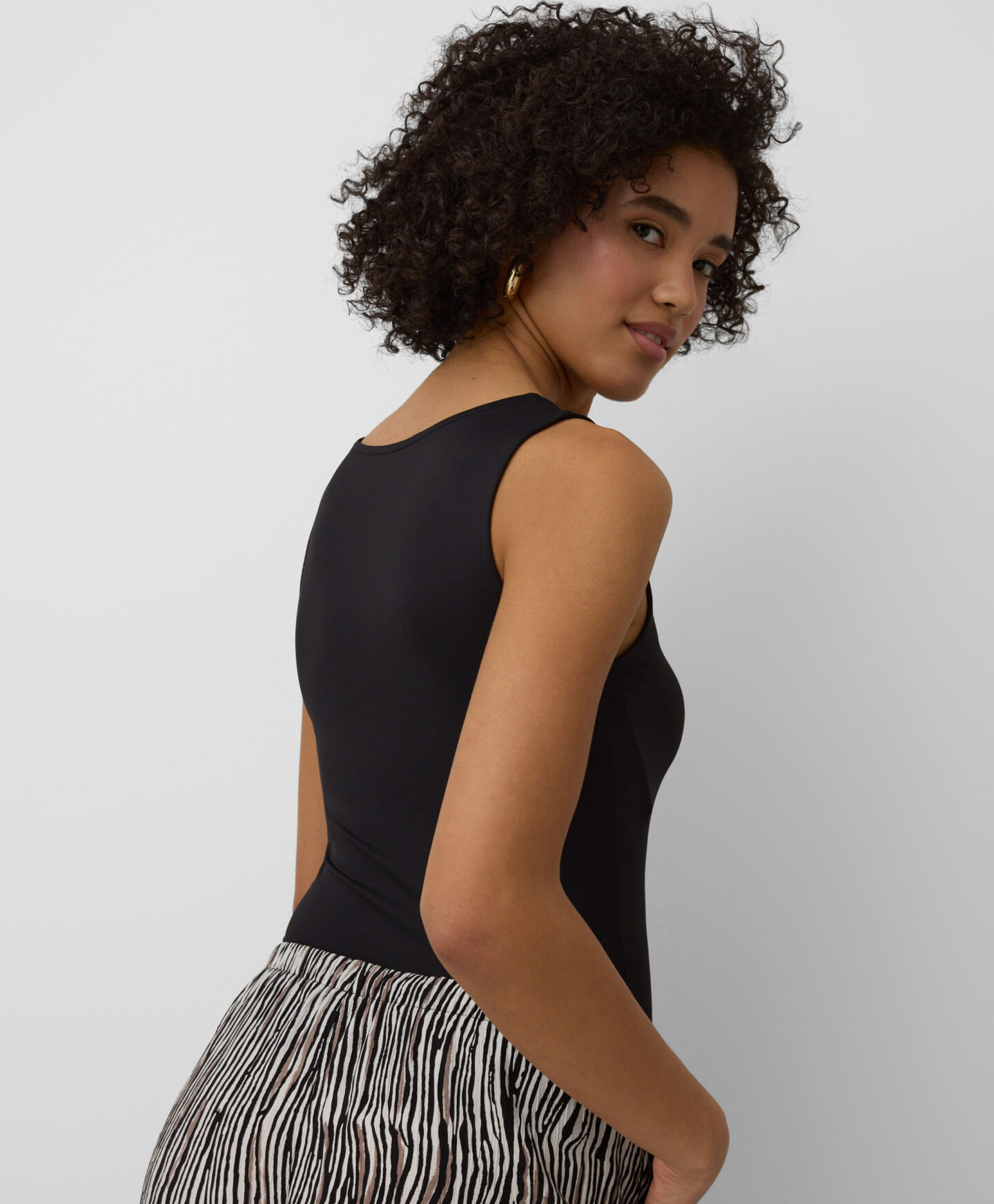 Top damski czarny jest niezwykle uniwersalny. Pasuje zarówno do jeansów, chinosów, szortów, jak i spodni sportowych. Założysz go pod żakiet lub bluzę sportową. Gładka faktura i jednolity kolor sprawiają, że ten top stanie się podstawą każdej udanej stylizacji. W ofercie trzy warianty kolorystyczne do wyboru.