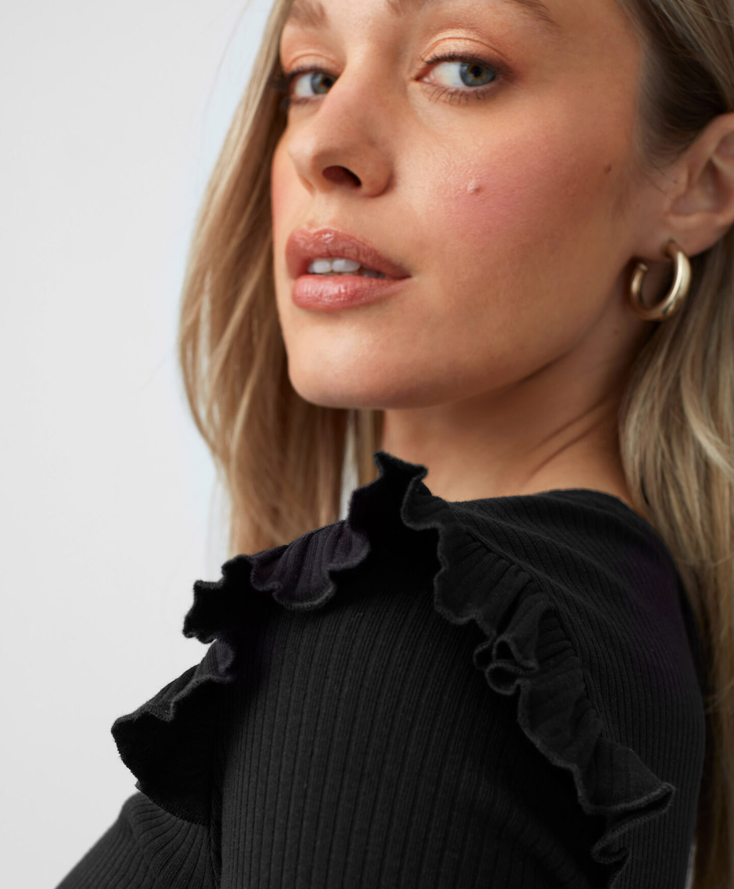 Tops ar garām piedurknēm ir elegants risinājums tiem, kas augstu vērtē komfortu. Tas lieliski pieguļ augumam, izceļot tā priekšrocības. Volāna detaļa jebkuram apģērbam piešķir eleganci un īpašu šarmu. Šāds krekls ir labi piemērots gan svinīgiem gadījumiem, gan ikdienas stilam.