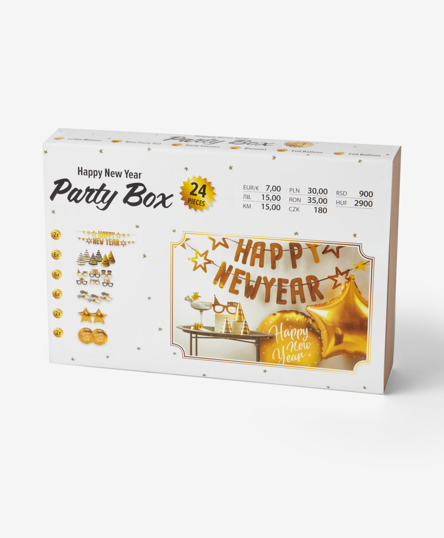 Naujametinių dekoracijų rinkinį sudaro 24 elementai, kurie padės surengti nepamirštamą vakarėlį. Rinkinį sudaro: akiniai, kepuraitės, švilpukai, girlianda ir įvairių formų balionai. Pasitikite Naujuosius metus su PEPCO!