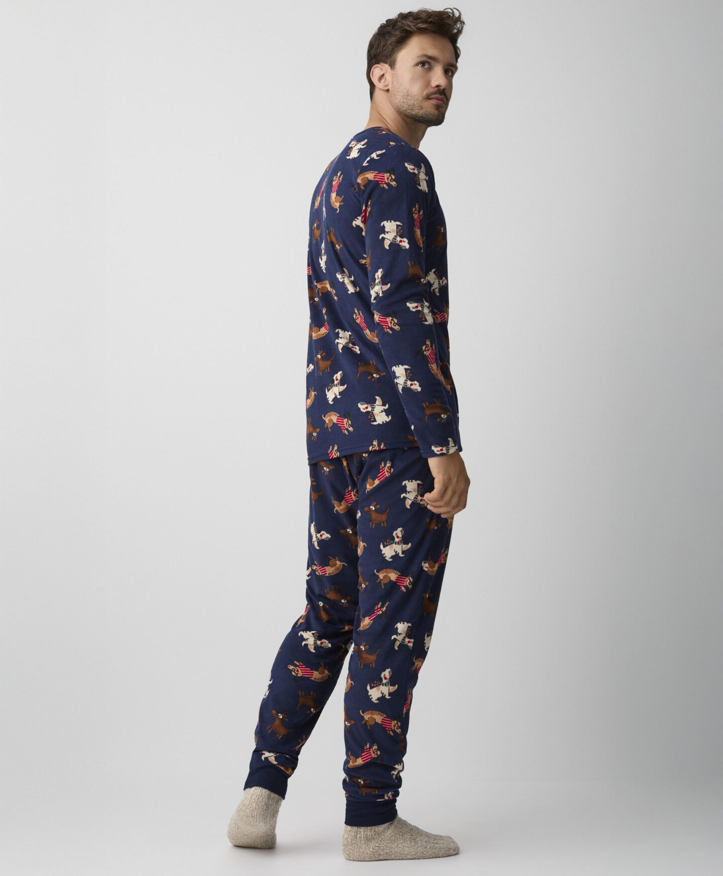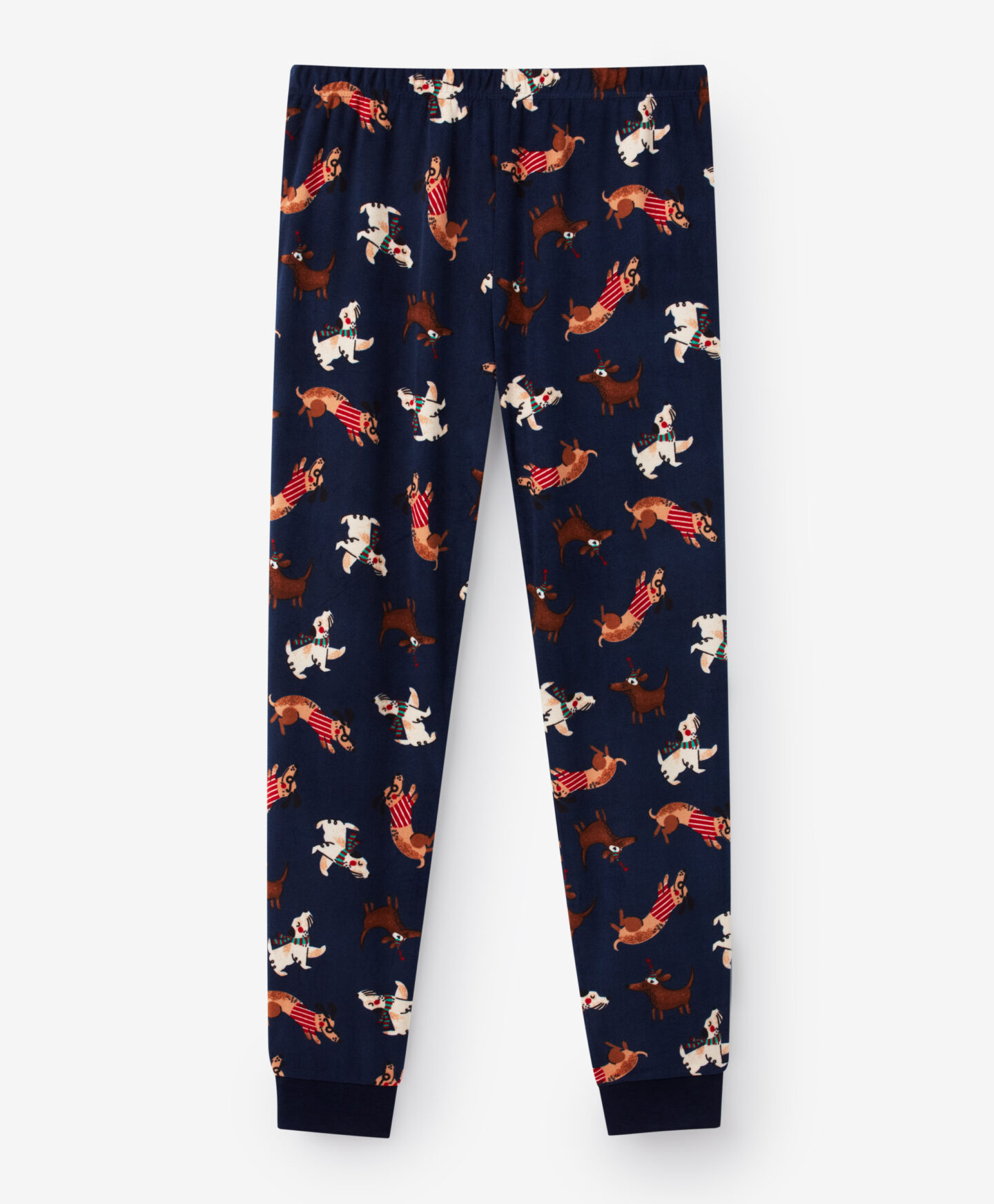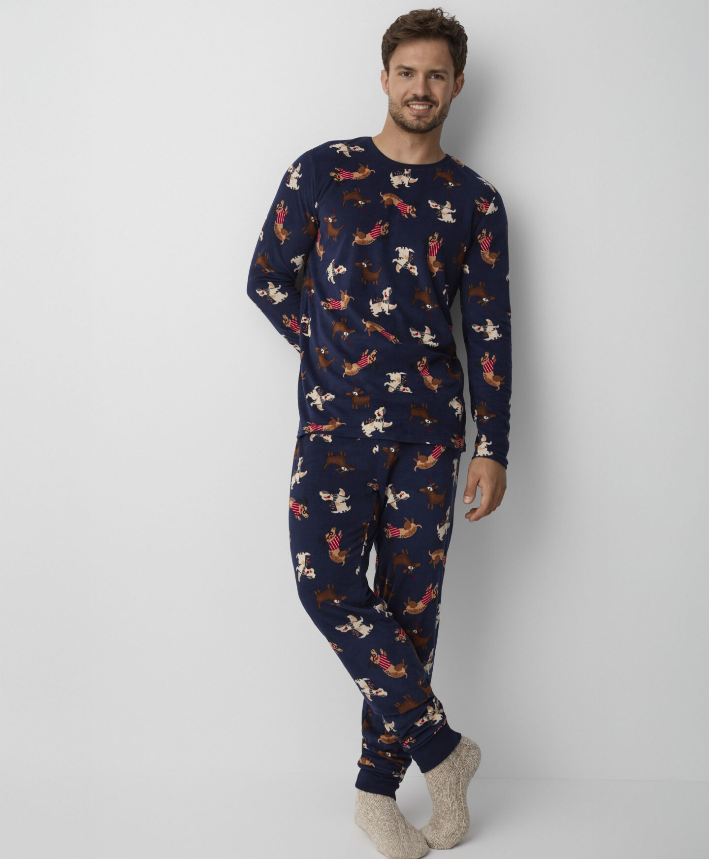 Velūra pidžama ar suņiem ir ideāli piemērota vēsākām dienām. Izgatavota no mīksta un patīkama pieskārienam velūra, tā nodrošina siltumu, komfortu miegam un mājīgumu. Rotaļīgie raksti ar suņu motīviem liks ikvienam vēlēties to valkāt pirms gulētiešanas. Ideāli piemērota šo četrkājaino draugu cienītājiem.