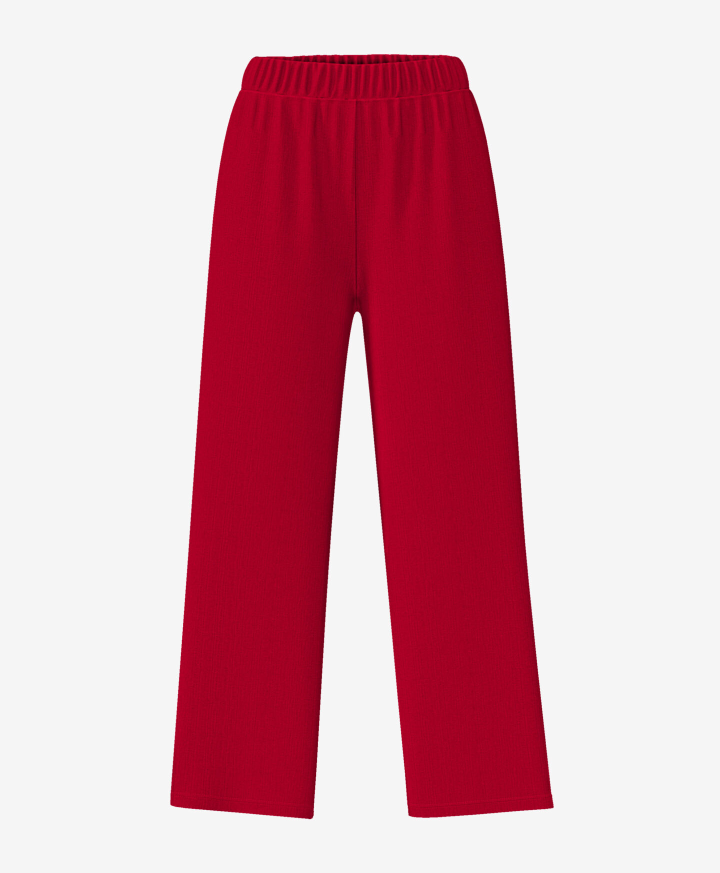 Vienkrāsaina pidžama ir viegla, elpojoša un lieliski piemērota gulēšanai, un tās tumši sarkanais tonis perfekti saskan ar svētku noskaņu. Komplektā ietilpst krekls ar garām piedurknēm un platas bikses, kas nodrošina pilnīgu kustību brīvību.
