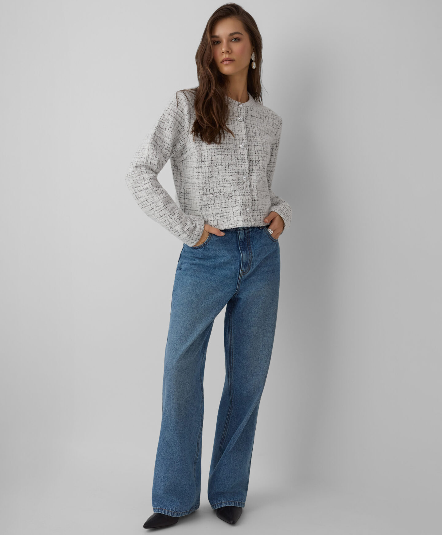 Žakete ar dekoratīvām pogām piešķirs garderobei mirdzumu. Spīdīgās pogas piesaista uzmanību un piedod žaketei izsmalcinātu raksturu, perfektu papildinot dažādus apģērbus – no formāliem līdz ikdienišķiem. Žaketi var kombinēt gan ar džinsiem, gan elegantām biksēm.
