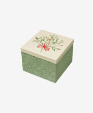Zaļajai kartona kastei ir dekoratīva apdruka svētku noskaņā. Tā ir praktiska un estētiska, tāpēc lieliski piemērota, lai kastē iesaiņotu pārsteigumus mīļajiem. Dāvanas šādā iepakojumā izskatās īpaši un rada prieku jau no pirmā acu uzmetiena.