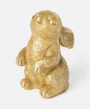 Zelta krāsas polirezīna zaķis piesaista uzmanību ar eleganto izskatu. Polirezīns ir viegls, izturīgs materiāls, ko īpaši neietekmē laiks un laikapstākļi, kas nodrošina figūriņas ilgstošu kvalitāti. Zaķis ir ideāls tiem, kas meklē smalkus, gaumīgus akcentus. Pieejami dažādi dizaini.