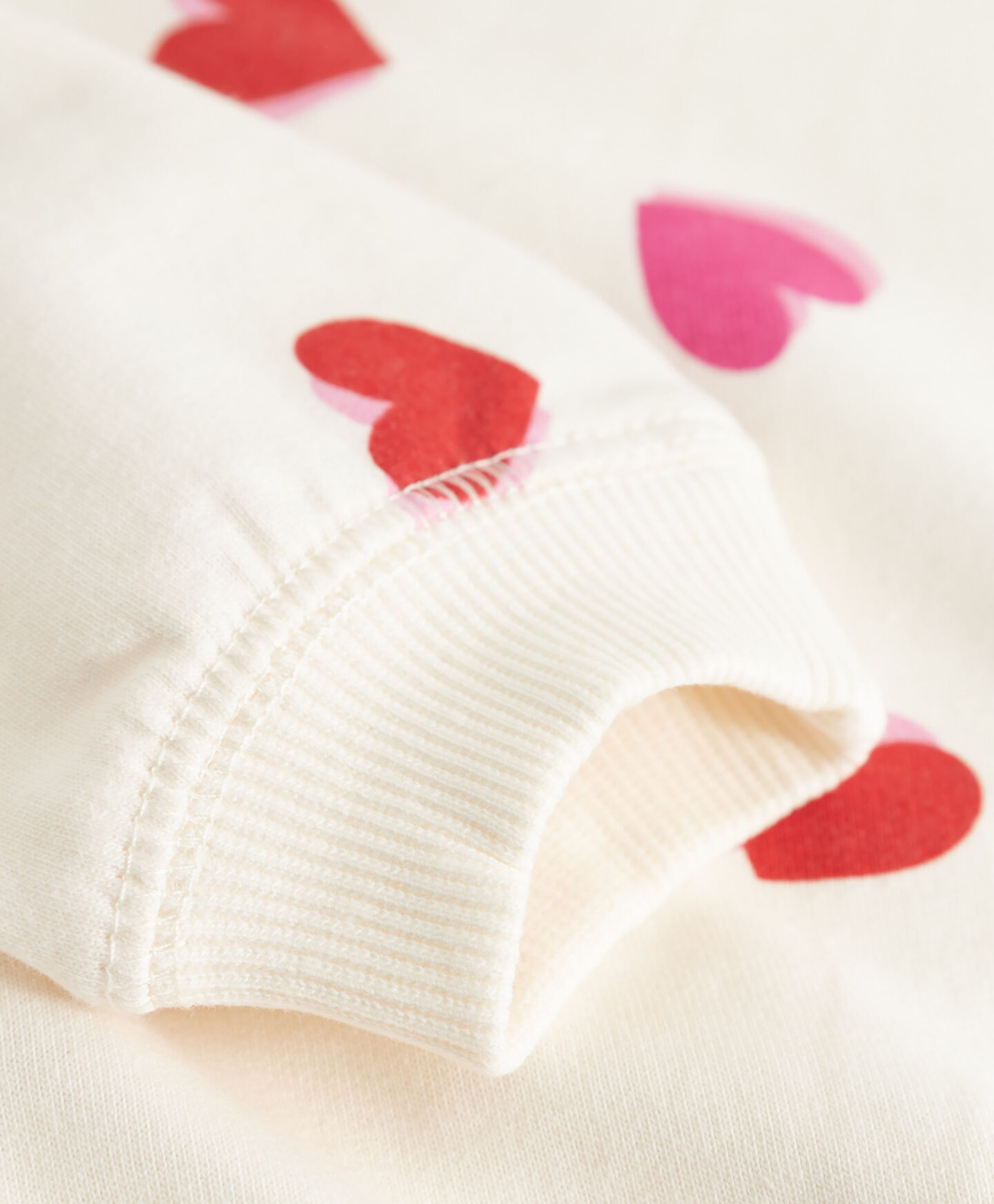 100% kokvilnas džemperis ar mīlīgām sirsniņām iekaros jebkura mazā ķipara sirdi. Izgatavots no mīkstas un elpojošas kokvilnas, tas ir maigs un piemērots bērna jutīgajai ādai. Apaļais kakla izgriezums ar izturīgām vīlēm nodrošina komfortu, uzvelkot un novilkot džemperi. Platās aproces un apakšmalas apdare garantē valkāšanas komfortu. Pieejami arī citi modeļi.