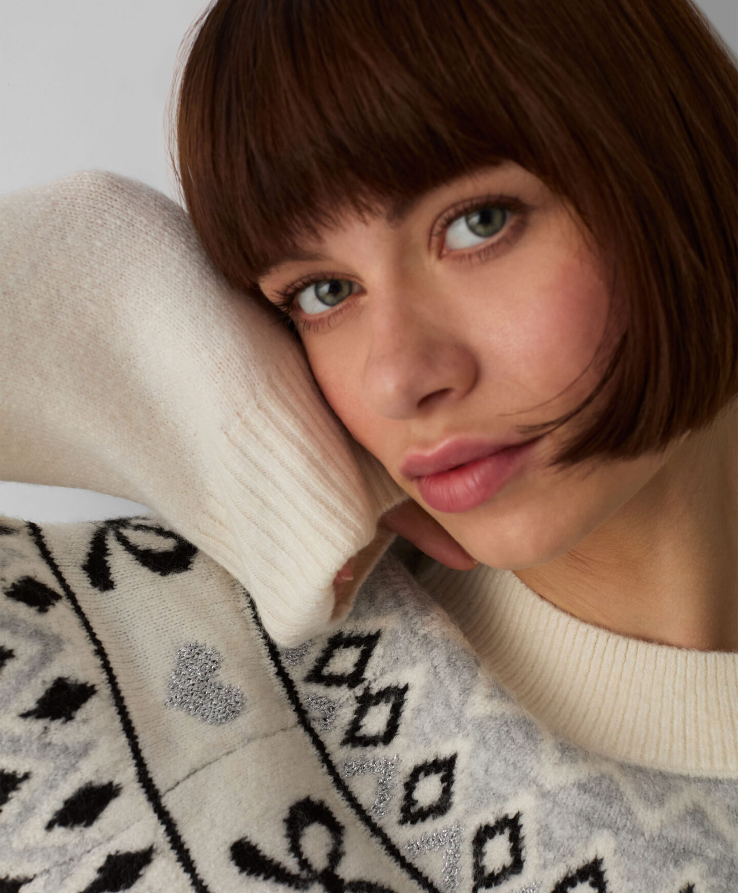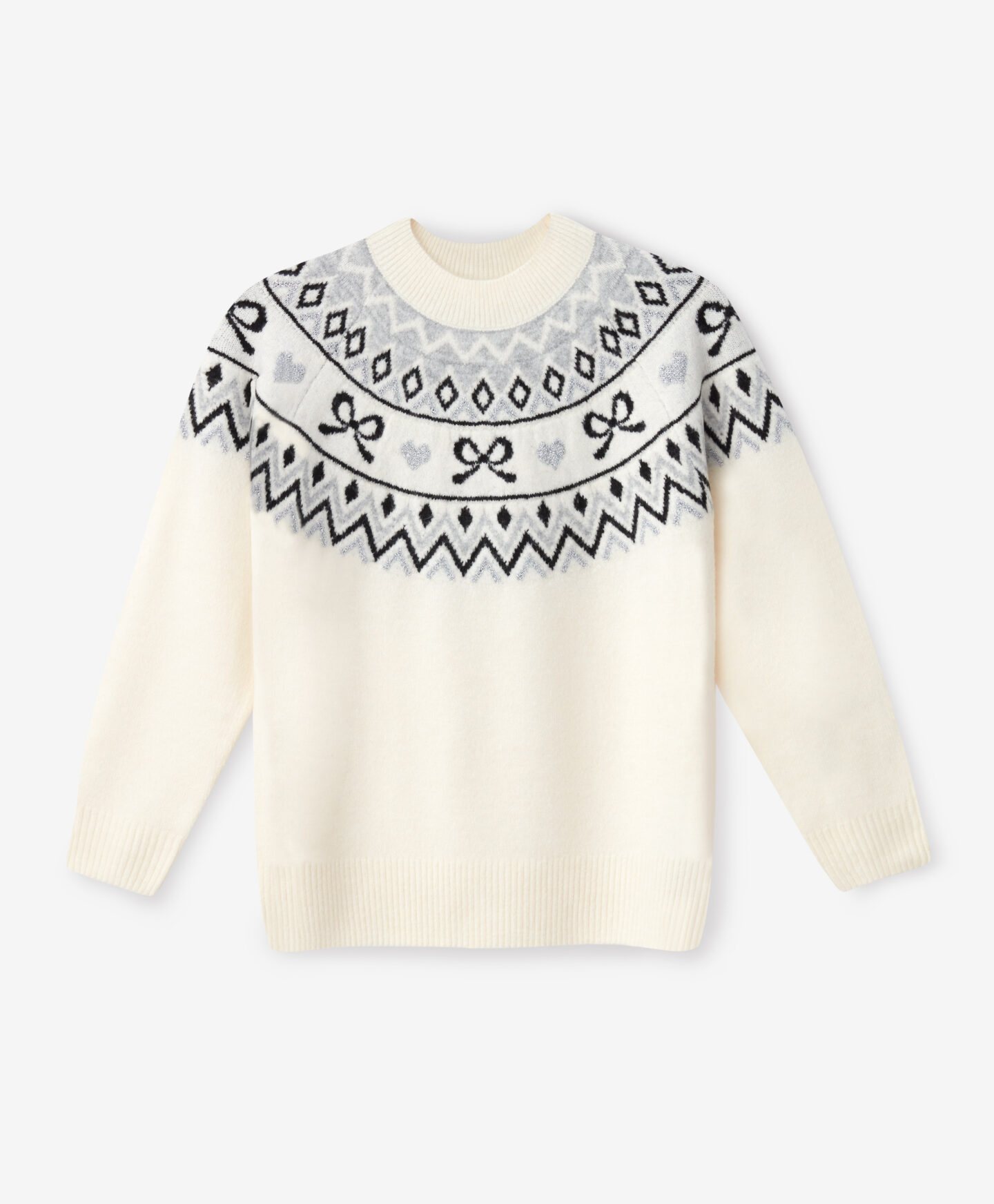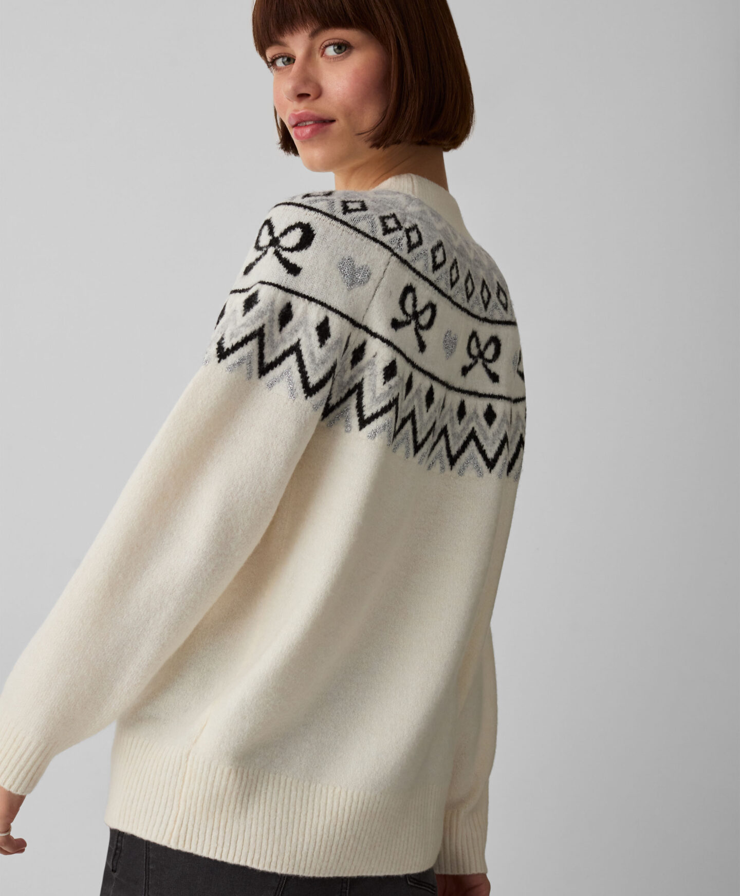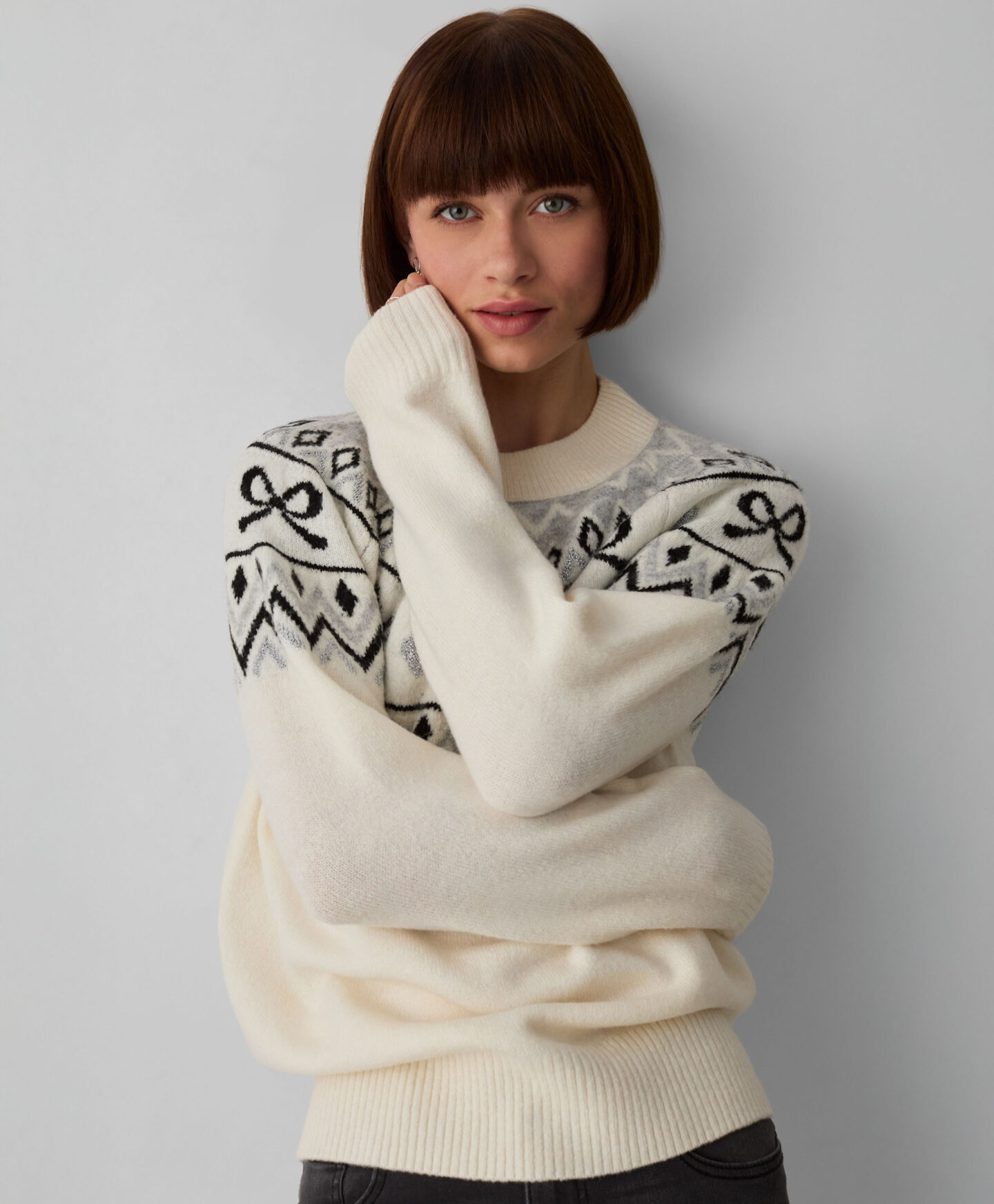 Ziemeļvalstu stila džemperis ar bantēm ir ne tikai silts, bet arī stilīgs. Krēmkrāsas džemperis ar pelēkiem un melniem norvēģu rakstiem izskatās ļoti iespaidīgi. To var kombinēt gan ar svārkiem, gan ar biksēm, katru reizi sakomplektējot veiksmīgu tērpu.